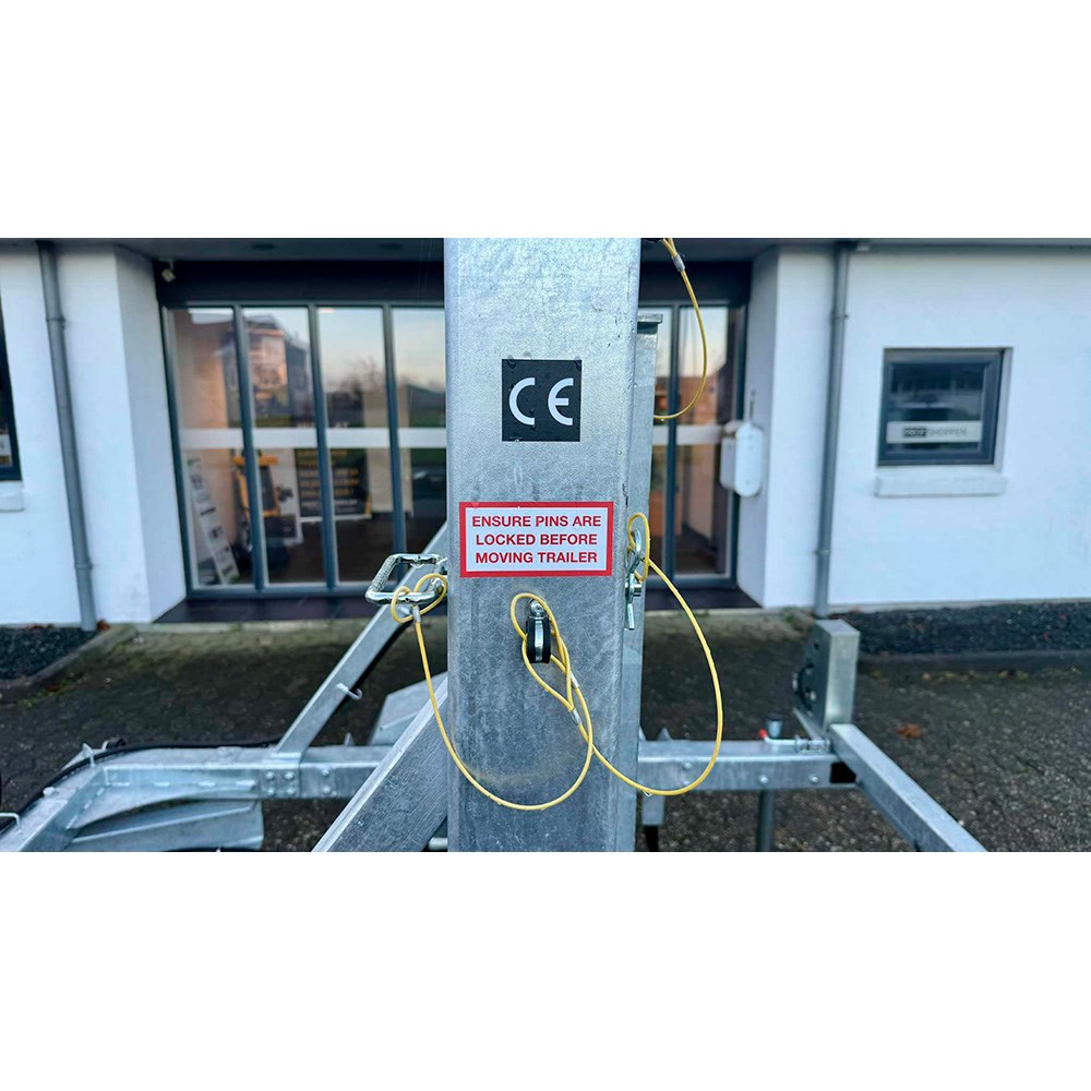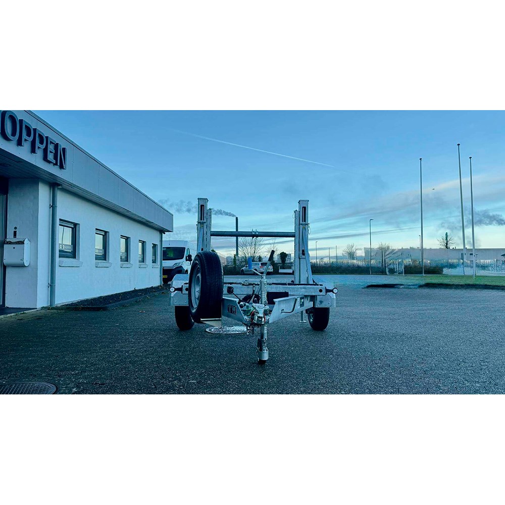 Der medfølger desuden reservehjul og reservehjulsholder, støtteben samt et kraftigt 48 mm næsehjul, som giver stabilitet, når traileren ikke er koblet på trækkøretøjet. Den samlede konstruktion er gennemtænkt ned til mindste detalje og sikrer, at traileren altid er klar til brug i krævende arbejdssituationer. Akslen til kabelrullen er 77 mm i diameter.