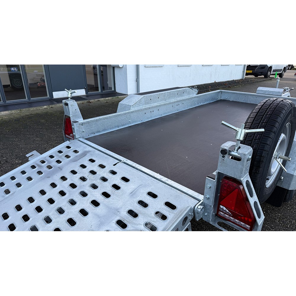 Traileren er udstyret med 1.400 mm fuldbrede ramper i galvaniseret stål med skridsikre greb, som giver bedre fodfæste ved på- og aflæsning. Kraftige galvaniserede stålskærme fungerer samtidig som solid og sikker belastningsflade. Integrerede sidetrin i heavy duty stål med skridsikker overflade giver sikker adgang til ladet og reducerer risikoen for faldulykker.