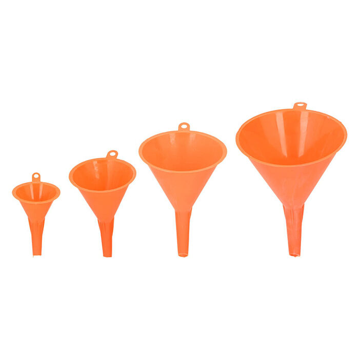 Når du skal fylde sprinkler, olie eller et andet flydende middel på bilen eller motorcyklen, er det praktisk at have et tragtsæt ved hånden, alt efter hvilken størrelse tragt, du står og har brug for. Med dette tragtsæt får du fire tragte i forskellige størrelser, der dækker forskellige behov. Den orange farve gør dem nemme at få øje på, og de passer ind i hinanden, så du kan holde bilen eller garagen ryddelig.
