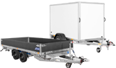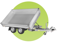 Både bagtippere og tre-vejs-tippere med totalvægt fra 750 kg til 3500 kg i enten stål eller aluminium