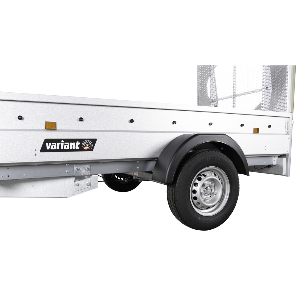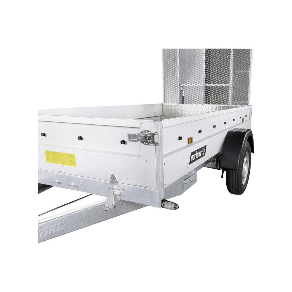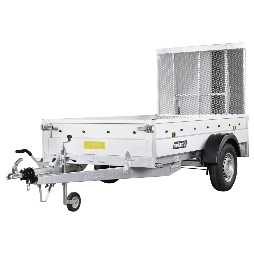 Standardtotalvægten for Variant 1304 F1 MR er 1350 kg, men traileren kan også bestilles med totalvægte på 1000, 1050, 1100, 1150, 1200, 1250 eller 1300 kg for at matche individuelle behov. Derudover er der flere konfigurationsmuligheder som trailerlås, trailernet, lygtesæt, alubund, hjulkilesæt, netgittersæt og ekstra stål, så du kan finde den løsning, der passer bedst til din brug.