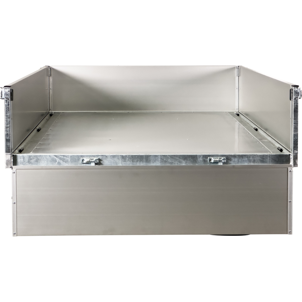 De fire oplukkelige sider og aftagelige hjørnestolper giver mulighed for læsning og aflæsning fra alle sider. Seks indvendige surringsøjer sikrer, at lasten holdes sikkert på plads under transport. Hjulene er placeret under ladet for øget lasteflade, og næsehjul medfølger som standard for nem håndtering.