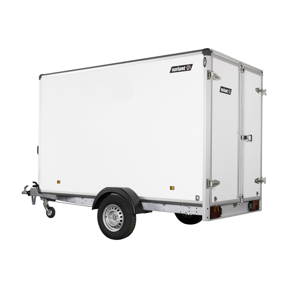Variant 1317 C3 er en pålidelig lukket cargotrailer udviklet til professionelle brugere, der har behov for sikker og effektiv transport af udstyr, materialer og gods. Med en stærk finérkonstruktion og hjul placeret på siden af chassiset opnås både stabilitet og optimal udnyttelse af det indvendige lastrum.
