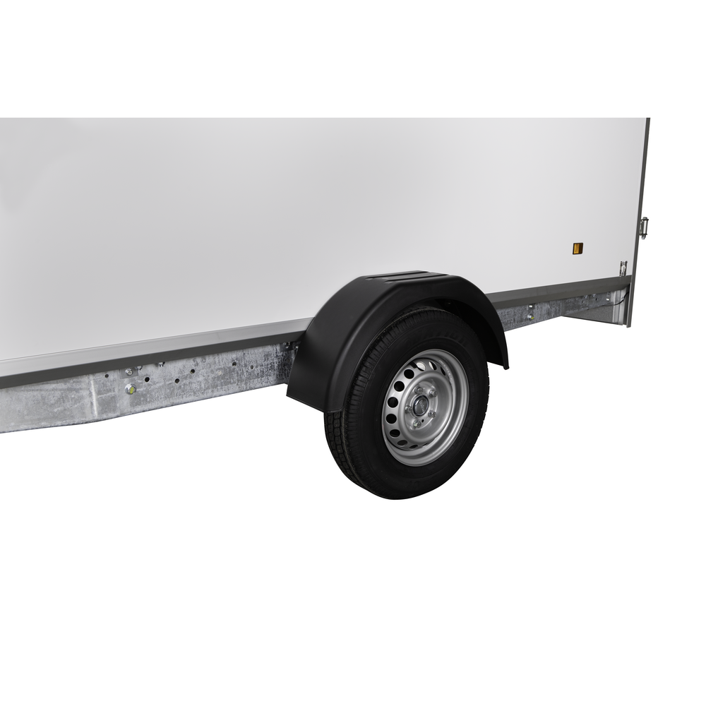 Sider, bund og tag er fremstillet i slidstærk finér, som giver høj styrke og lang levetid. Konstruktionen er udviklet til at modstå det danske vejr og hyppig belastning, hvilket gør traileren til et driftssikkert valg i hverdagen. Hjulene er placeret på siden af chassiset for ekstra stabilitet under kørsel, og standardbremserne sørger for tryg og kontrolleret manøvrering.