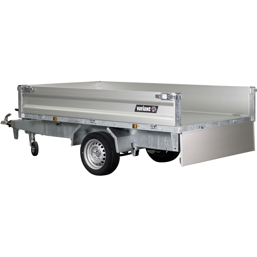 Traileren er bygget med en slidstærk stål- og finerbund samt lette, men kraftige alusider. De aftagelige hjørnestolper samt muligheden for at åbne alle fire sider giver maksimal fleksibilitet ved lastning, også når der arbejdes med maskiner eller fra siden.