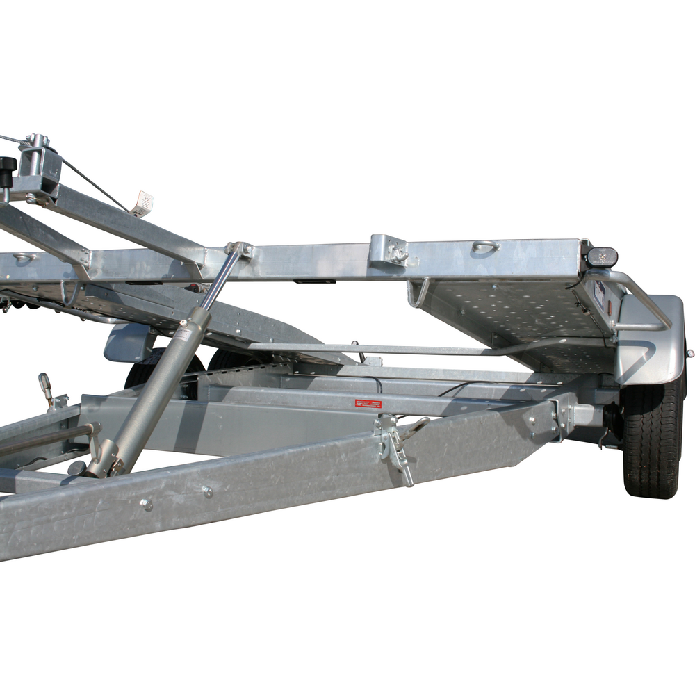 Traileren er udstyret med to aksler og bremser, hvilket giver øget sikkerhed under transport. Den solide varmgalvaniserede stålbund sikrer lang levetid og modstandsdygtighed over for slid og vejr. LED-lys er standardmonteret for optimal synlighed under mørke og dårlige lysforhold.