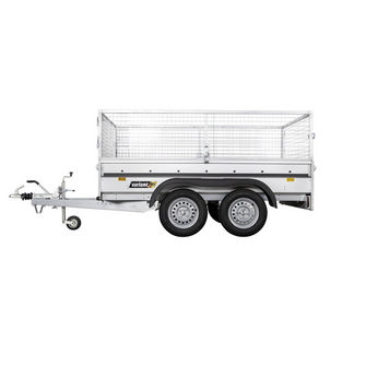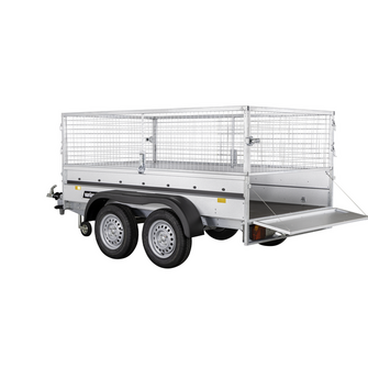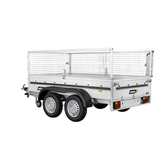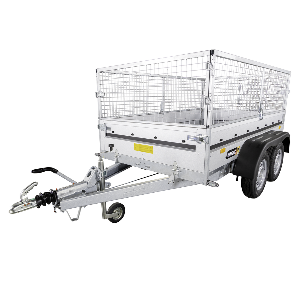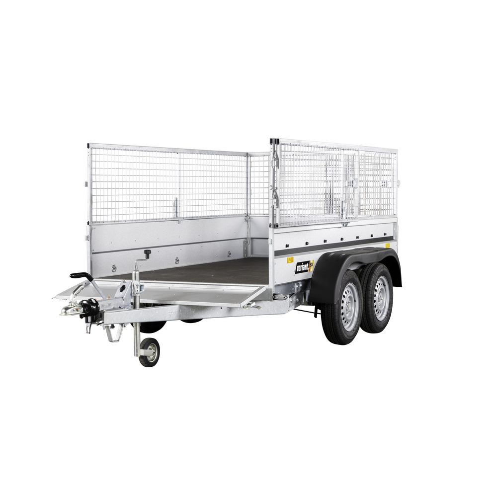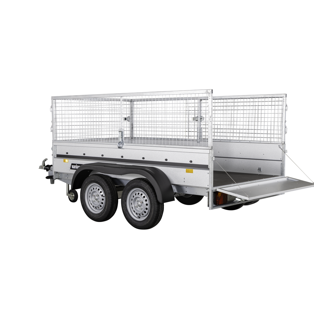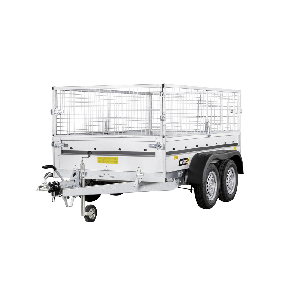 Traileren har to aksler, og hjulene er placeret på siden af chassiset, hvilket sikrer optimal stabilitet, selv med tung last. De fire udvendige surringsøjer gør det nemt at fastgøre gods, og næsehjulet medfølger for lettere manøvrering.