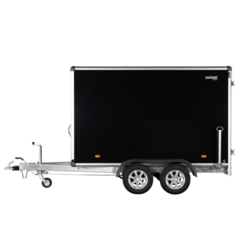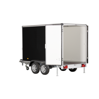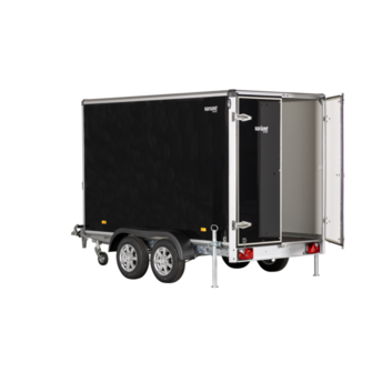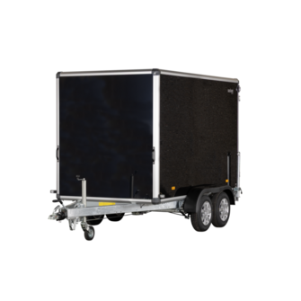 De sorte finérsider, robuste finertag og varmgalvaniserede chassis giver traileren et solidt udtryk. Alufælge og hjulstøddæmpere forbedrer kørekomforten, mens dobbelte bagdøre med stanglås sikrer nem adgang og sikker aflåsning. Bagrampe kan tilvælges for lettere håndtering af gods.