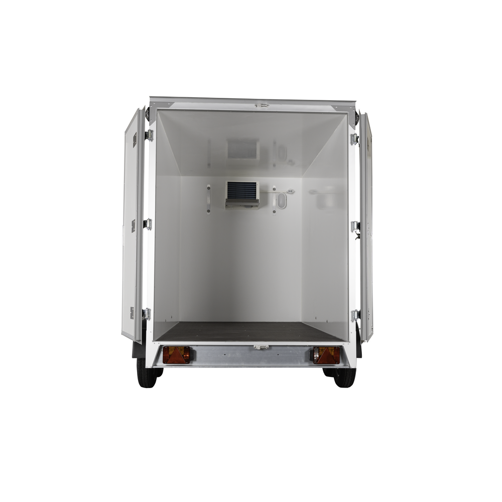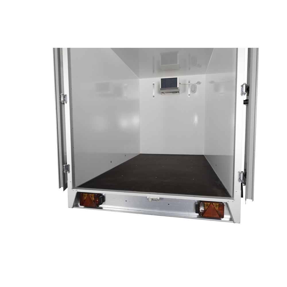 Traileren er opbygget i stærke skumpaneler i både sider og tag, hvilket sikrer effektiv isolering og energieffektivitet. Bunden er fremstillet i holdbar finer, som giver en solid base til daglige opgaver. De to aksler samt hjulenes placering på siden af chassiset giver stabile og sikre køreegenskaber, også ved tung last.