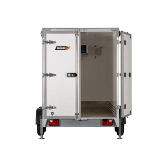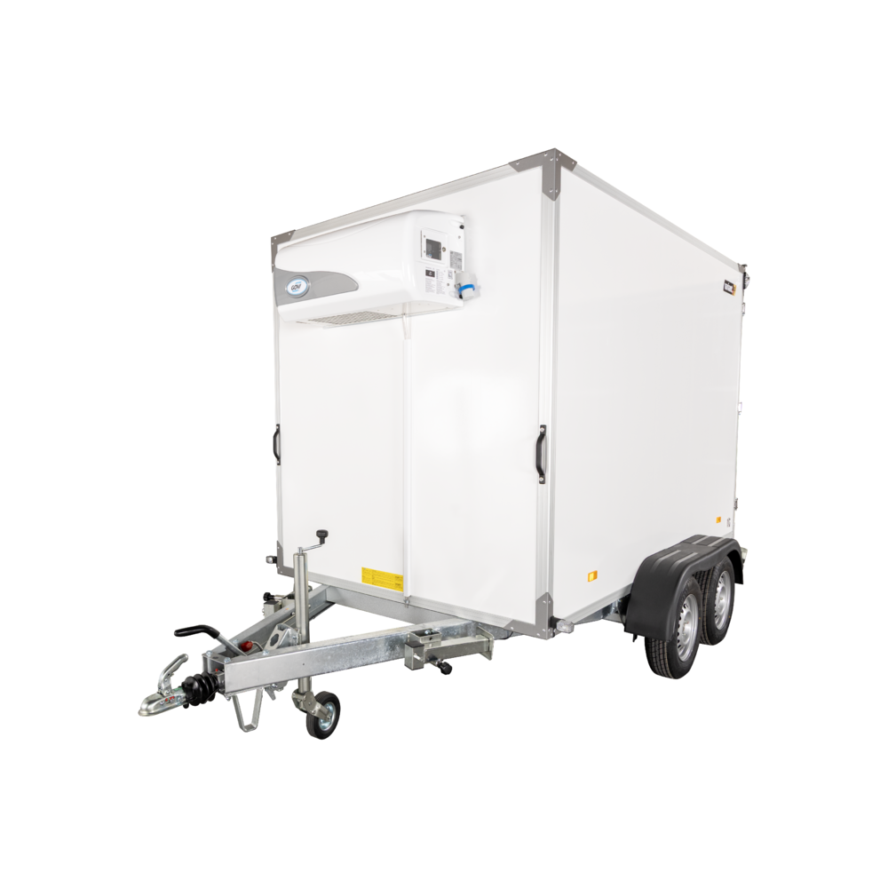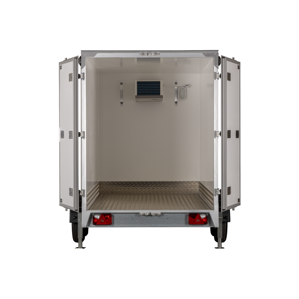 Trailerens karrosseri er bygget i robuste skumpaneler med tag i samme materiale, hvilket sikrer optimal isolering og en stabil køleevne fra +10°C til 0°C. Indvendigt giver 12 volt LED-lys et klart overblik over lasten, selv ved arbejde i mørke.
