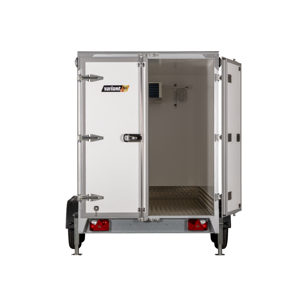 Variant 2017 K3 er en professionel køletrailer udviklet til erhverv, hvor stabil temperaturstyring og en stærk konstruktion er nødvendige. Med et rummeligt lastrum og et lysningsmål på 159 × 192 cm er modellen ideel til transport af temperaturfølsomme varer.