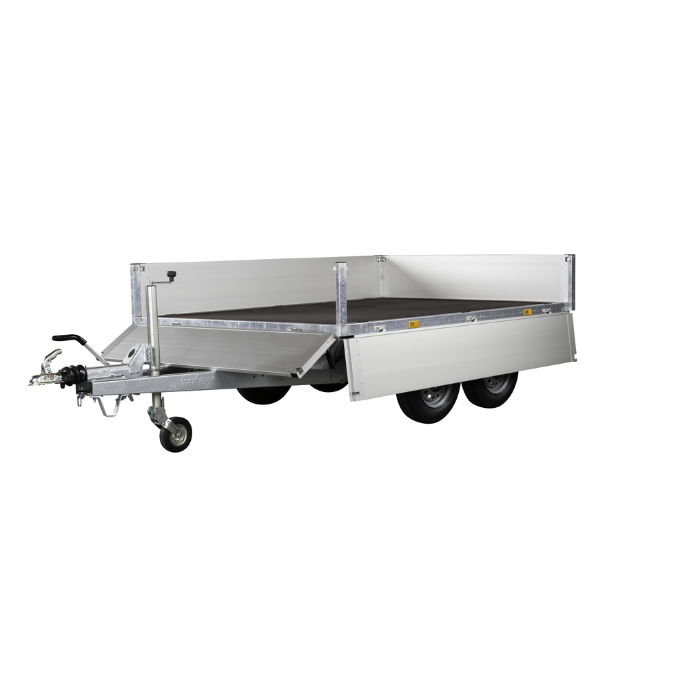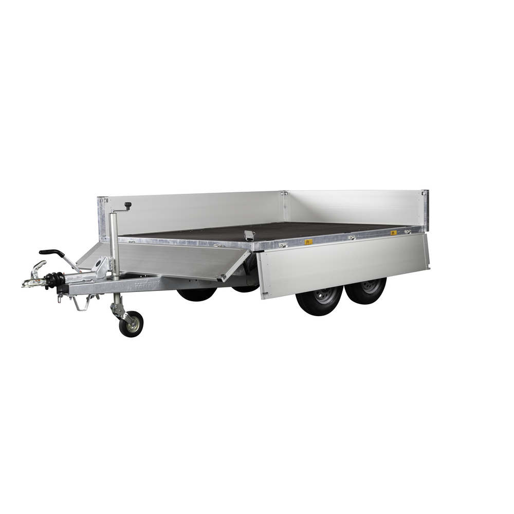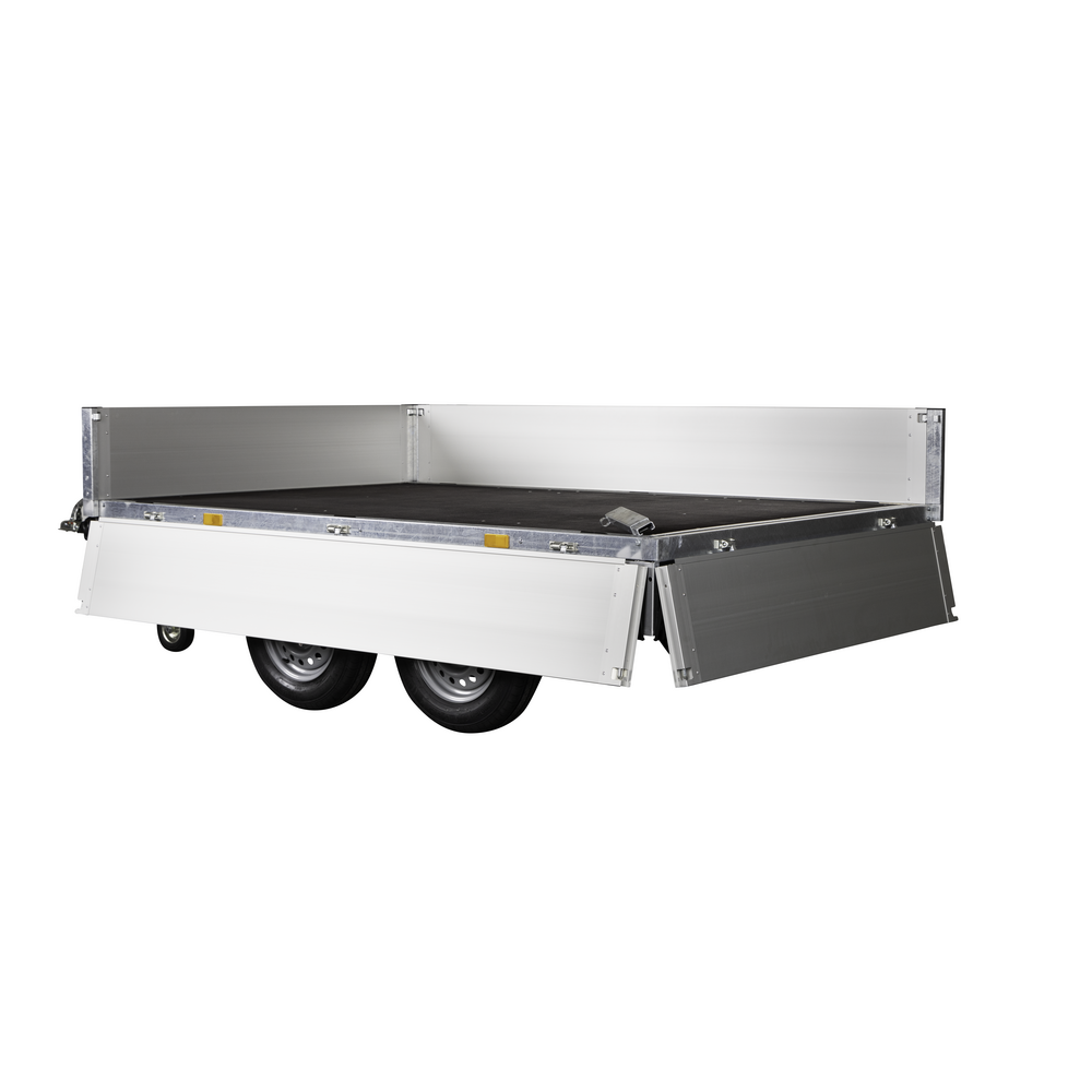 Traileren er udstyret med to aksler og hjul placeret under chassiset for at give maksimal udnyttelse af ladets bredde. Bunden er fremstillet i slidstærk finer, mens siderne er lavet i let og holdbart aluminium, der giver lav egenvægt og høj styrke. Alle fire sider kan åbnes, hvilket sikrer fleksibel adgang til ladet fra enhver retning.