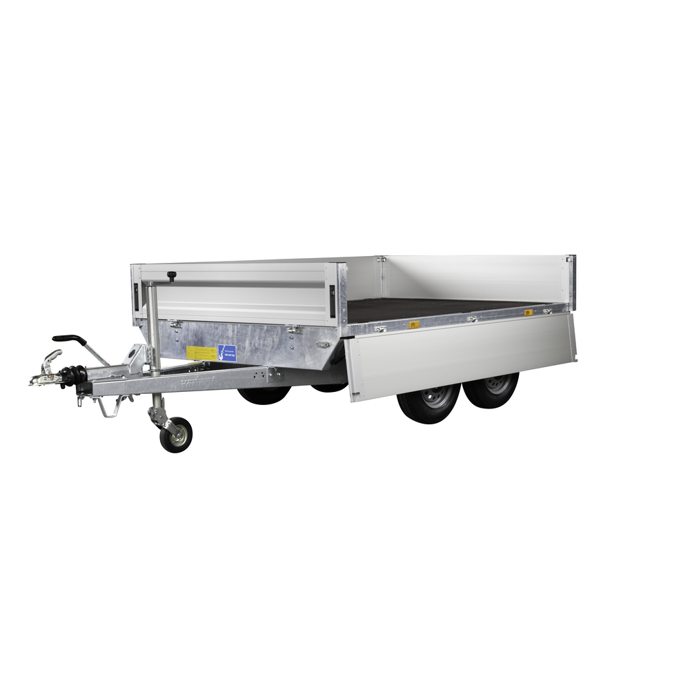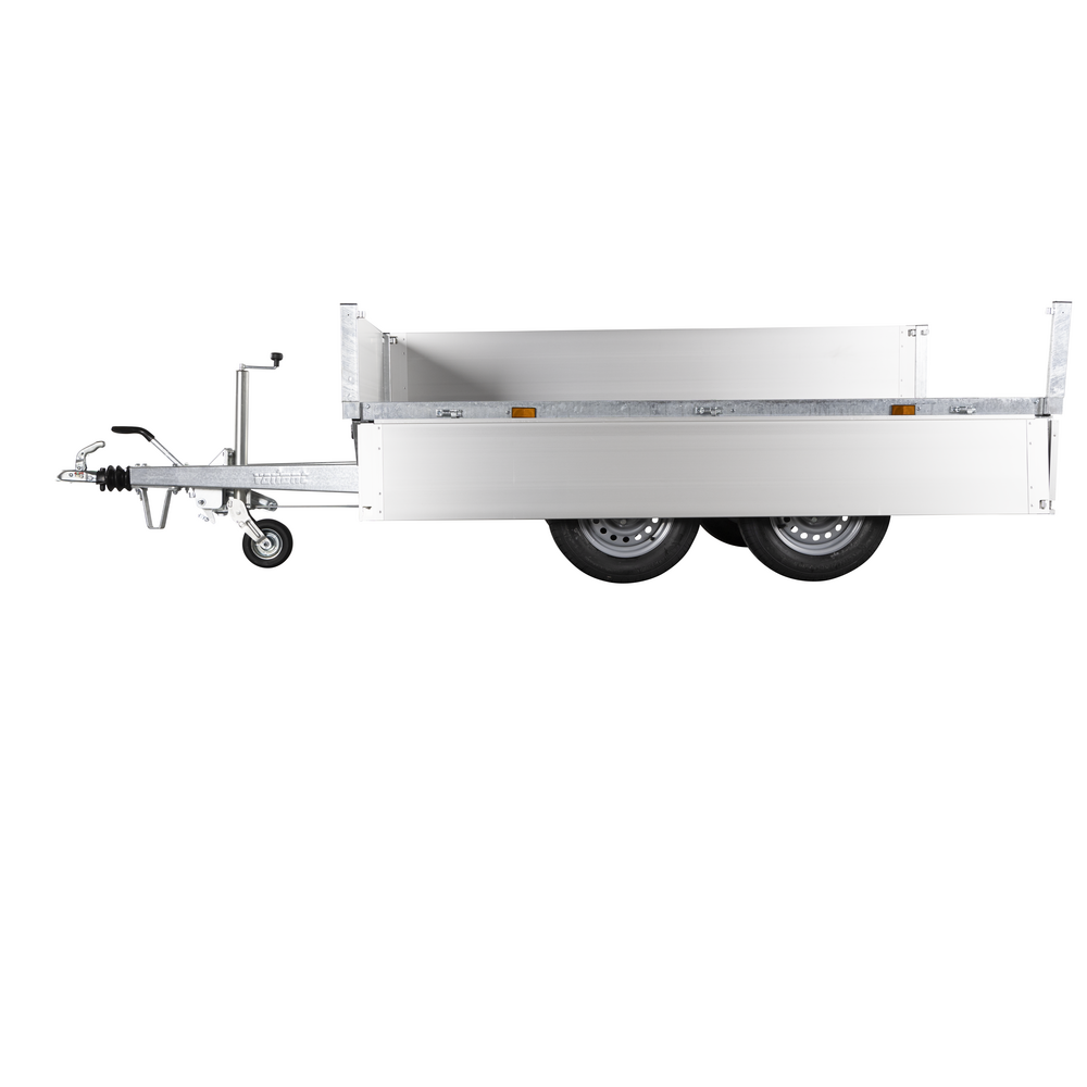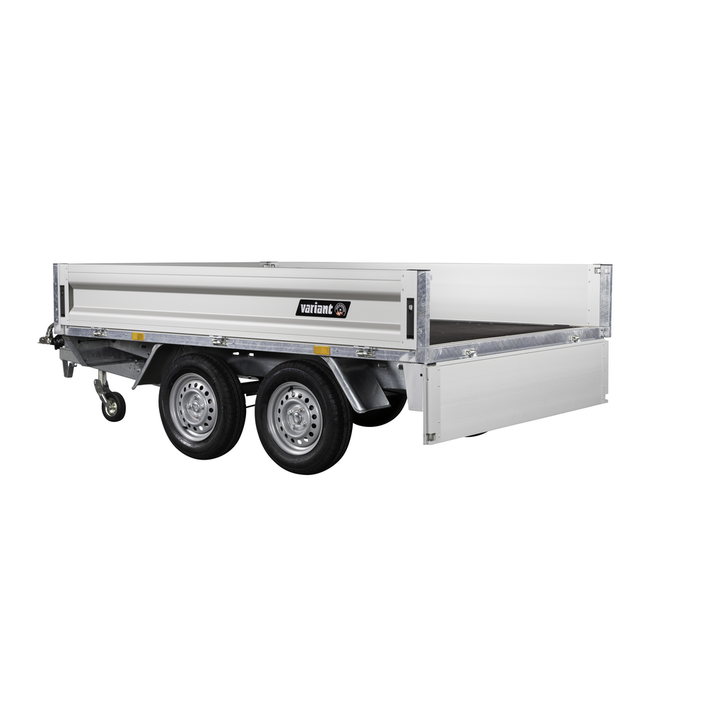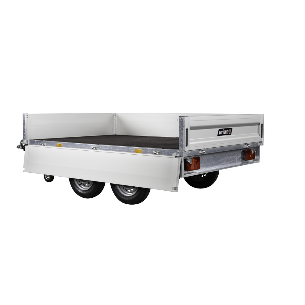 Traileren er udstyret med to aksler og hjul placeret under chassiset for at give maksimal udnyttelse af ladets bredde. Bunden er fremstillet i slidstærk finer, mens siderne er lavet i let og holdbart aluminium, der giver lav egenvægt og høj styrke. Alle fire sider kan åbnes, hvilket sikrer fleksibel adgang til ladet fra enhver retning.