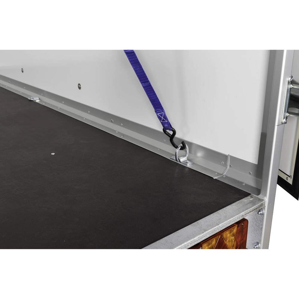 Bagdørenes lysningsmål gør det nemt at laste og losse udstyr. De seks indvendige surringsøjer giver mulighed for sikker fastgørelse af gods under transport. LED-lys og indvendigt lys kan tilvælges for bedre arbejdskomfort, og støtteben kan monteres efter behov.