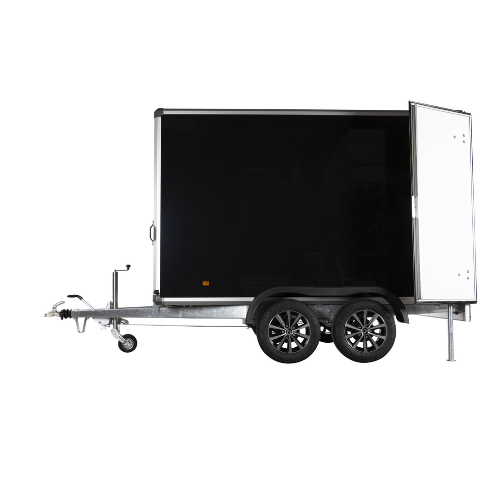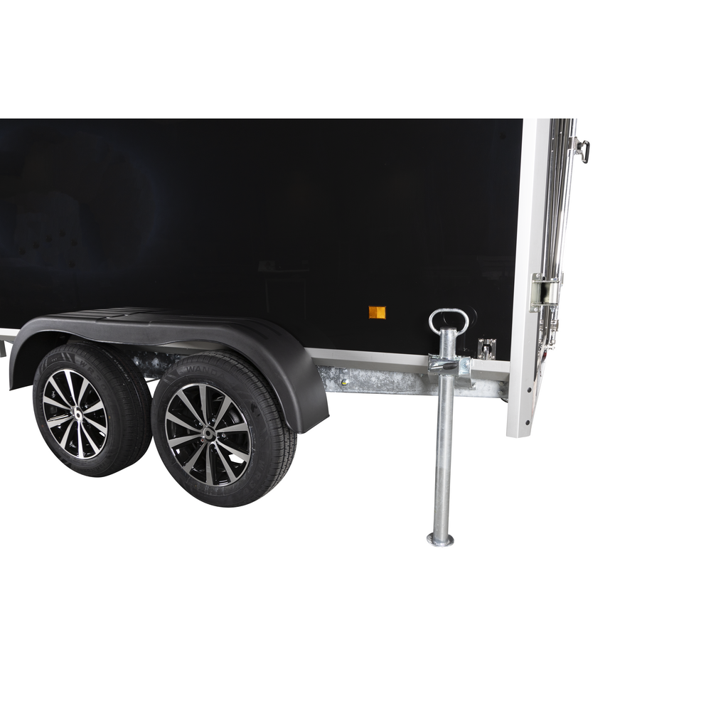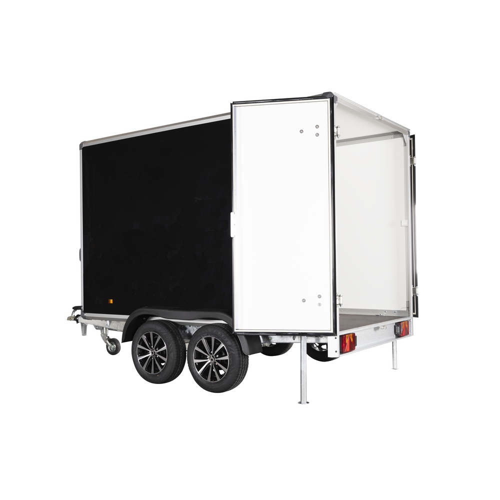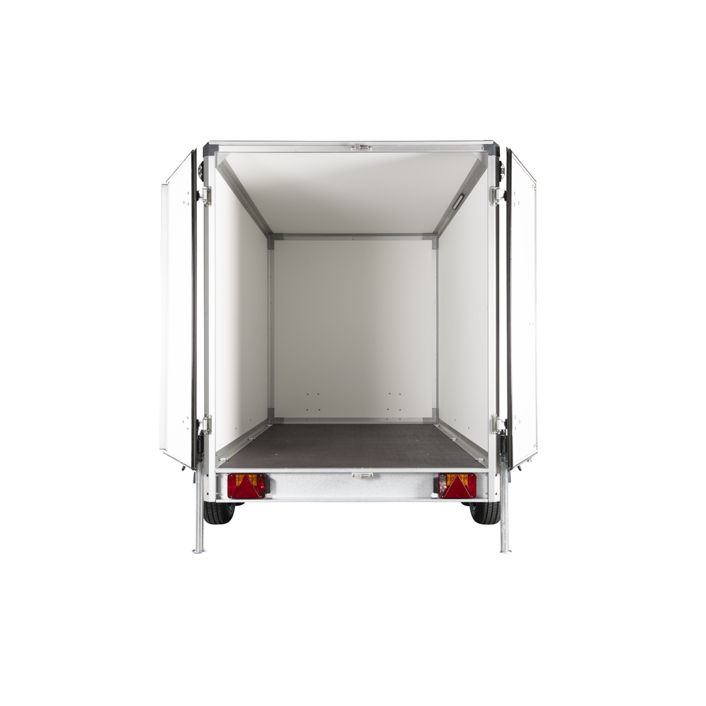 Den store bagdør giver praktisk adgang til lastrummet, som er udstyret med seks indvendige surringsøjer til sikker fastgørelse af gods. To støtteben bagtil sikrer stabilitet ved af- og pålæsning, og den indvendige 12 volt LED-belysning giver godt overblik i mørke.