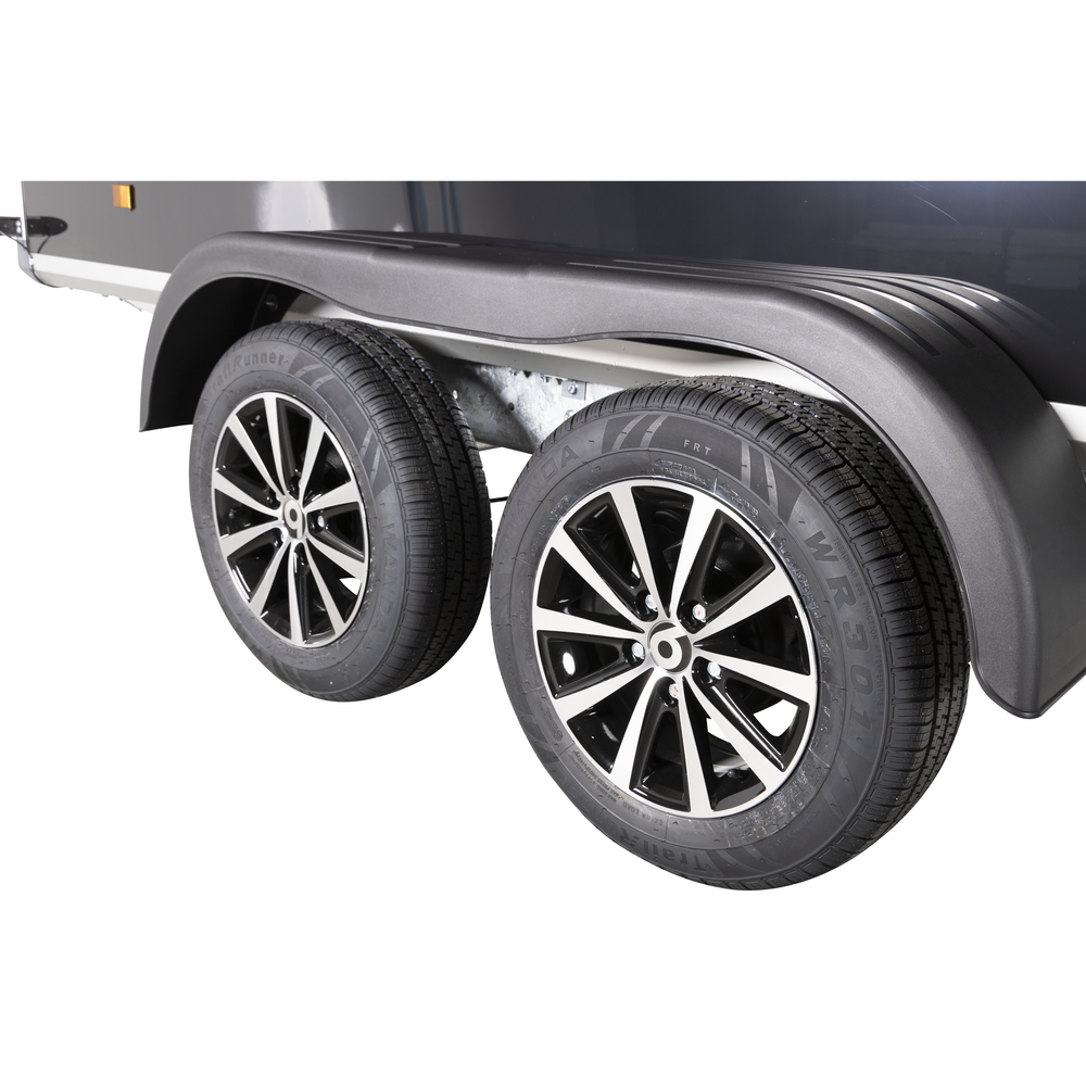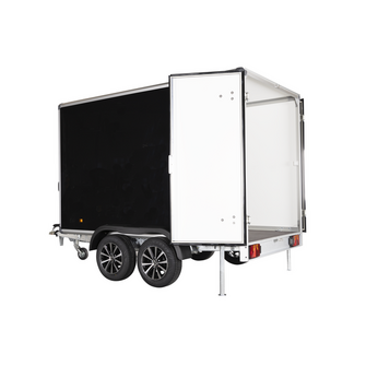 Traileren er bygget med kraftige finérsider, finértag og en slidstærk bund, der sikrer lang levetid og modstandsdygtighed over for intensiv brug. De dobbelte aksler og hjulenes placering på siderne af chassiset giver høj stabilitet, selv ved tung last. Alufælge og hjulstøddæmpere bidrager til en komfortabel og sikker køreoplevelse.