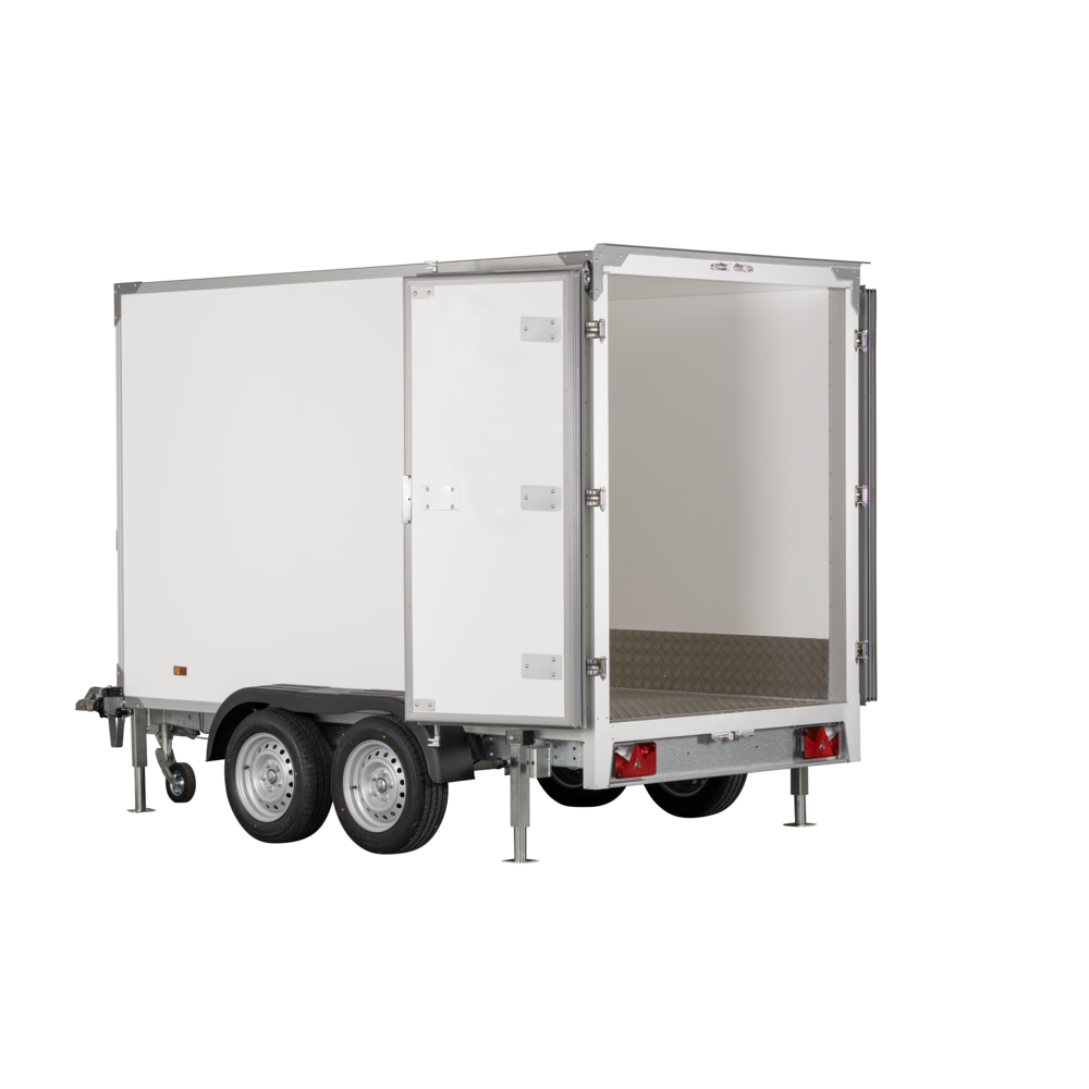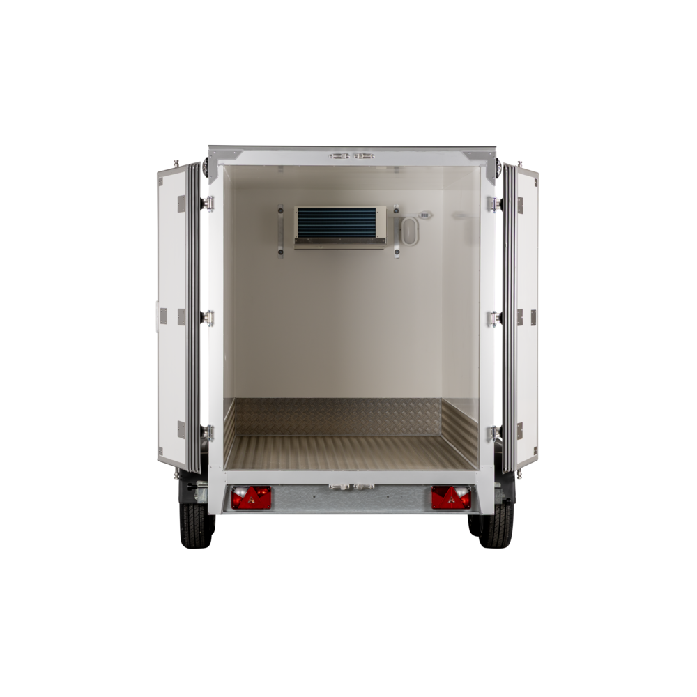 Traileren er konstrueret med skumpaneler i sider, tag og bund, hvilket sikrer optimal isolering og energieffektivitet. Den dobbelte aksel og hjulenes placering på siden af chassiset giver ekstra stabilitet og sikker kørsel, også under tung last og daglig brug.