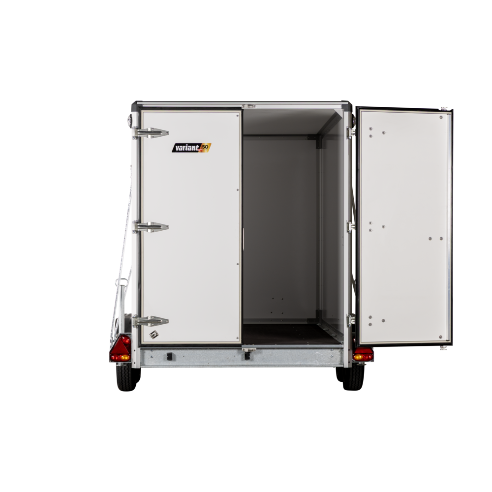 Variant 2705 CVB35 er en lukket cargotrailer designet til sikker og effektiv transport af udstyr og materialer, både til fritidsprojekter og dagligt brug i erhvervslivet. Den stærke konstruktion i finér og rummelige opbygning beskytter indholdet mod vejr og vind.
