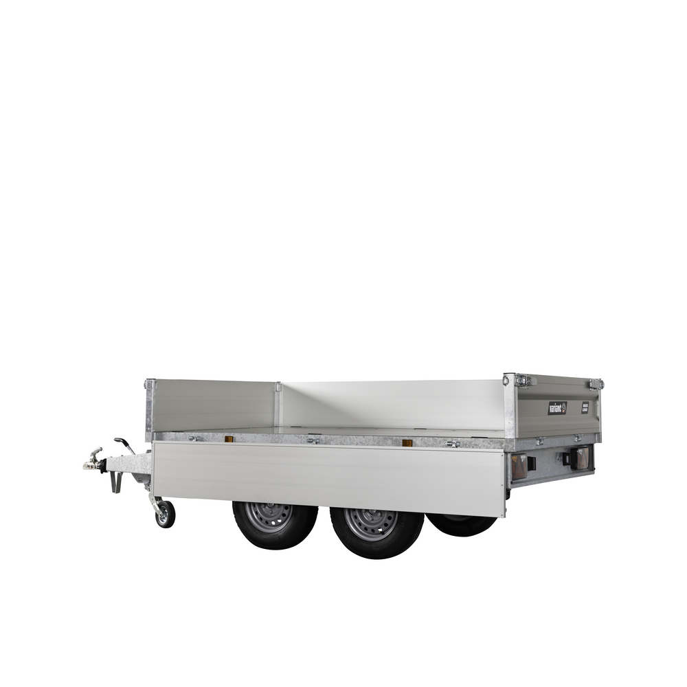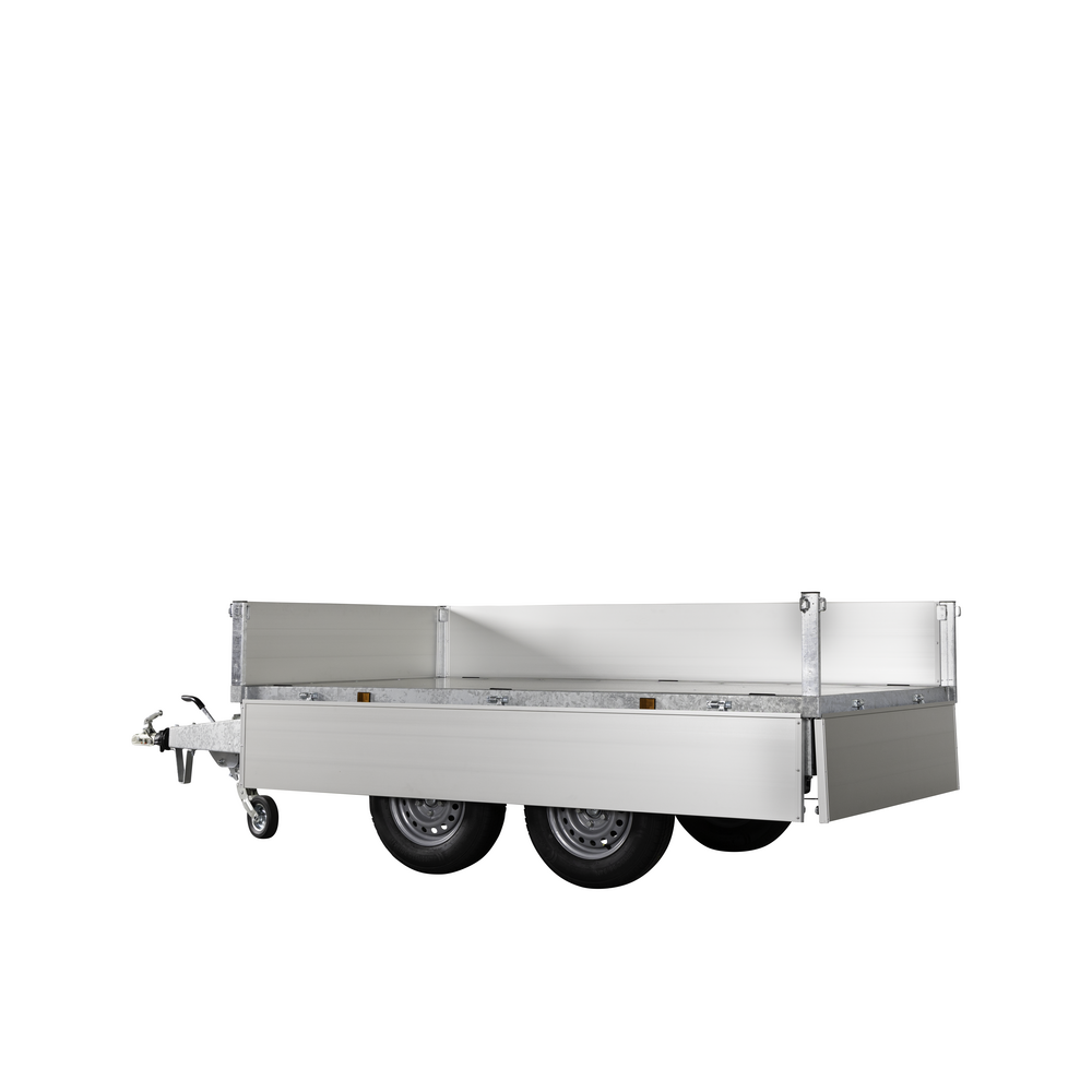 Traileren har aluminiumssider og bund i stål og finer, hvilket sikrer lang levetid og modstandsdygtighed over for slitage. Aftagelige hjørnestolper og mulighed for at åbne alle fire sider giver fleksibilitet ved af- og pålæsning.