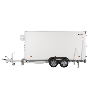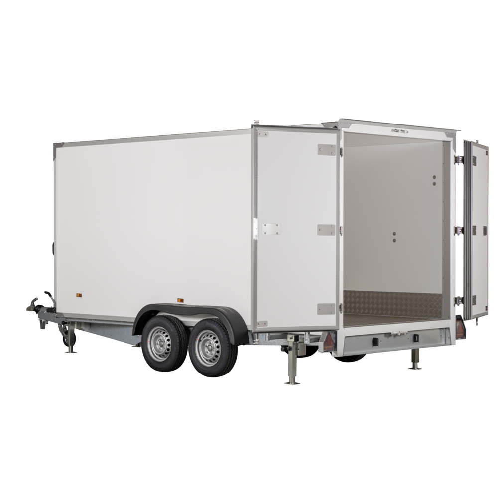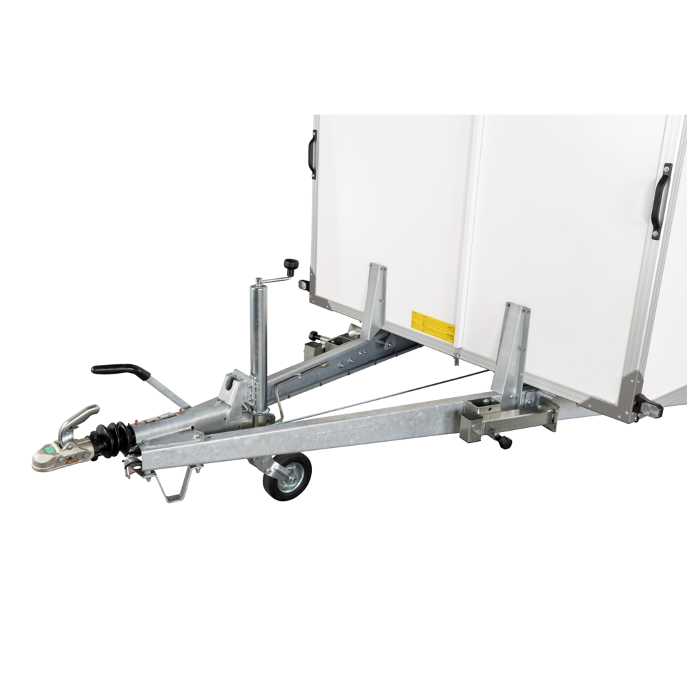 Traileren har en bred åbning, der gør adgang til lasten nem. Hjulene er placeret på siden af chassiset for øget stabilitet under kørsel, og næsehjul medfølger for nem manøvrering. Fire støtteben giver ekstra stabilitet ved af- og pålæsning.