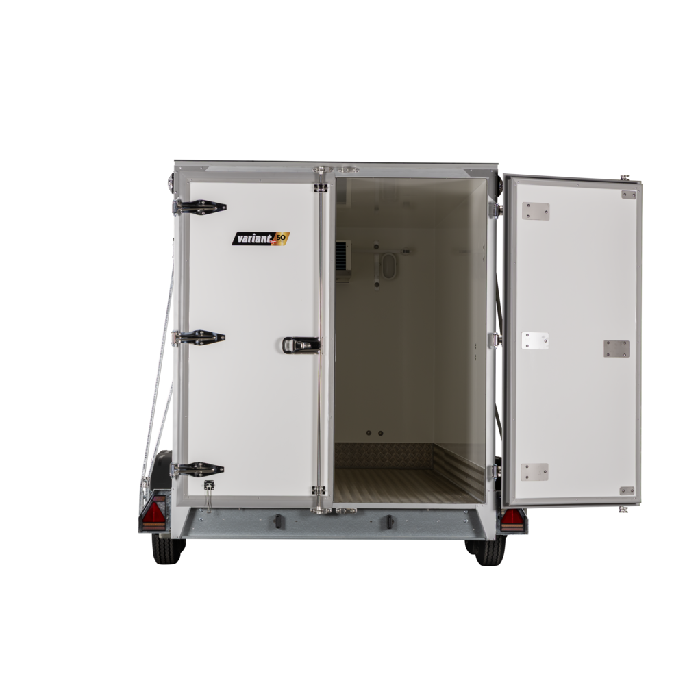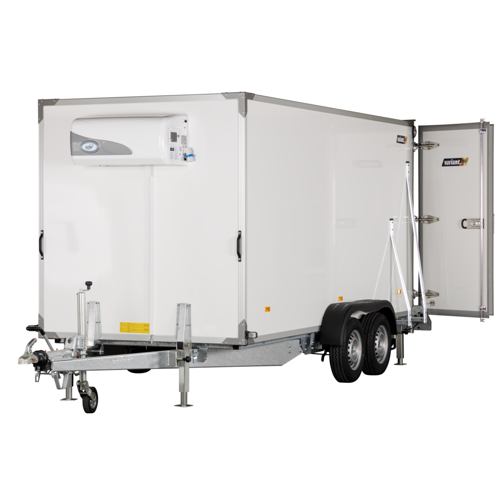 Variant 2719 K4 er en robust køletrailer designet til erhvervskunder med behov for præcis temperaturkontrolleret transport. Med kølekapacitet fra +10°C til 0°C er den ideel til fødevarelevering, catering, events og andre professionelle formål, hvor hygiejne og præcision er afgørende.