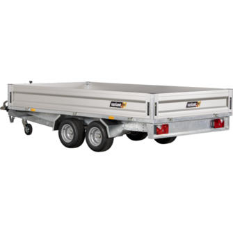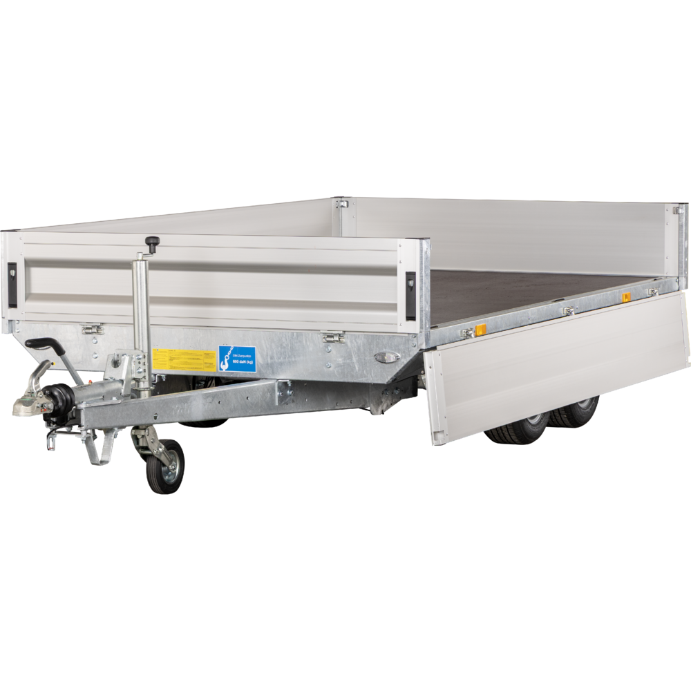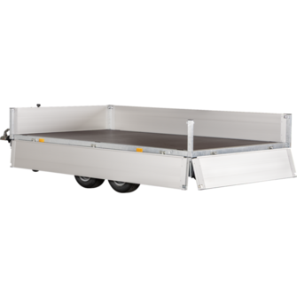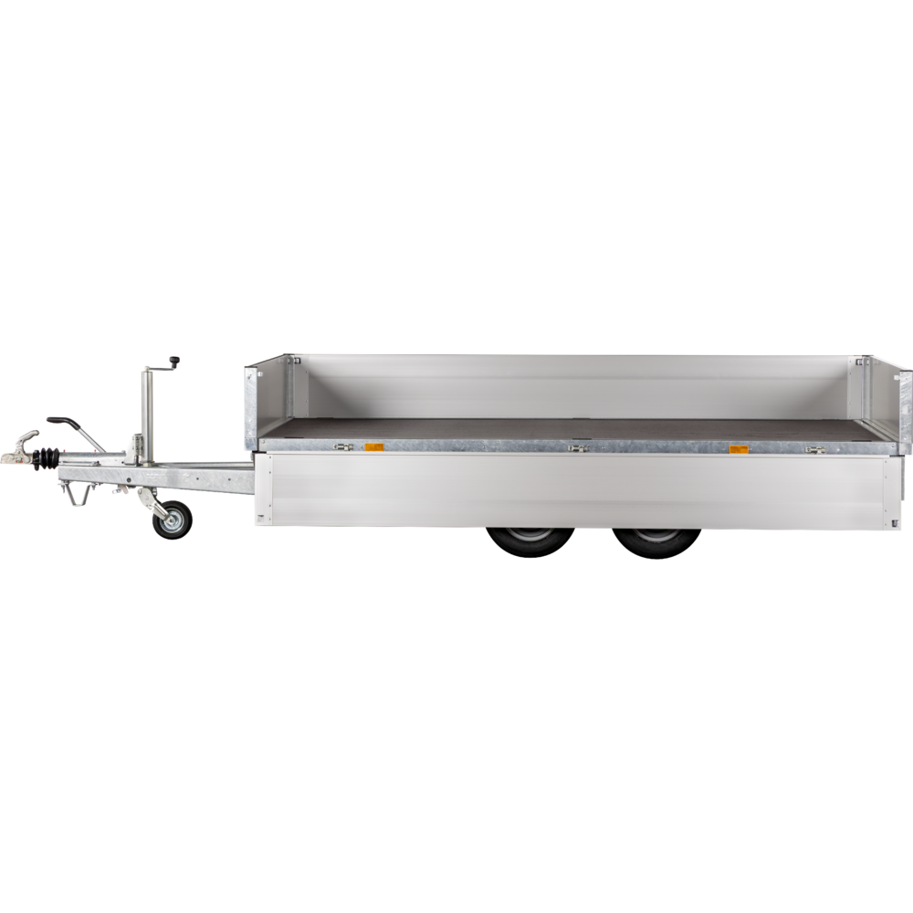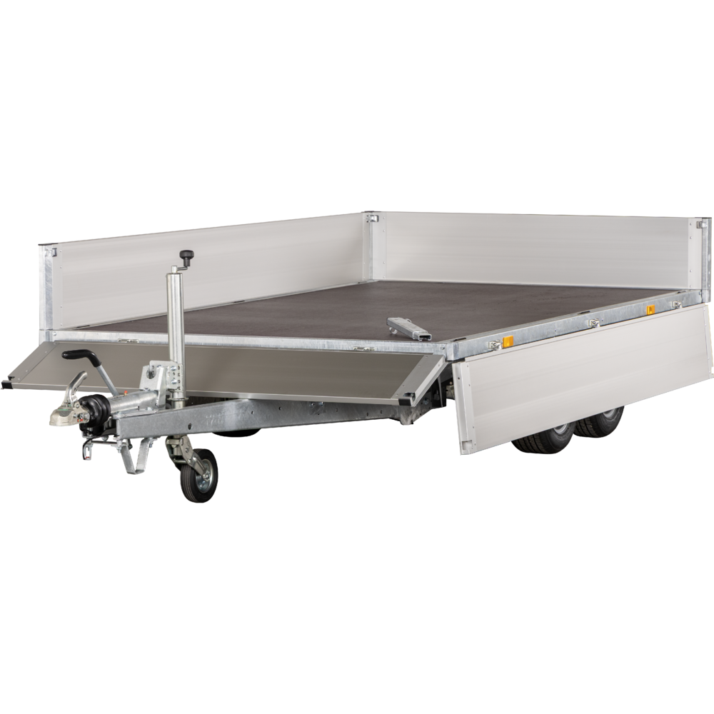 Traileren er udstyret med to aksler og hjul placeret under ladet, hvilket giver optimal udnyttelse af ladefladen. Den solide opbygning består af slidstærke aluminiumssider og en robust finerbund, som modstår både vejr og tung last. Aftagelige hjørnestolper giver mulighed for at tilpasse traileren til mange forskellige transportopgaver.