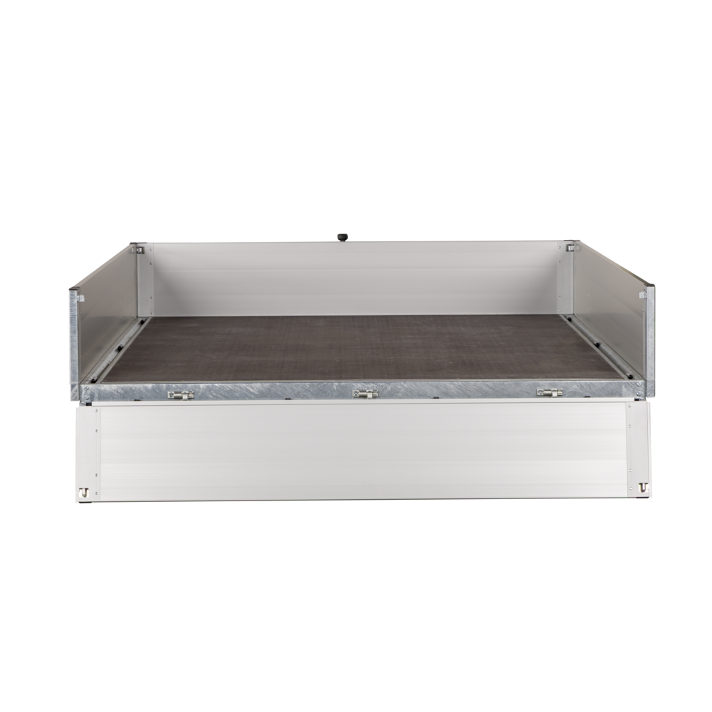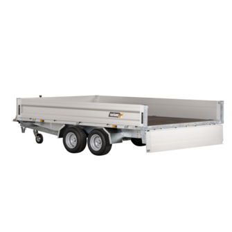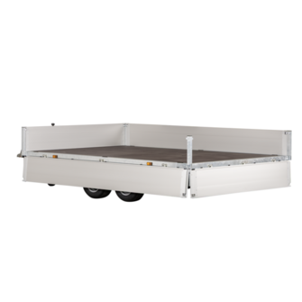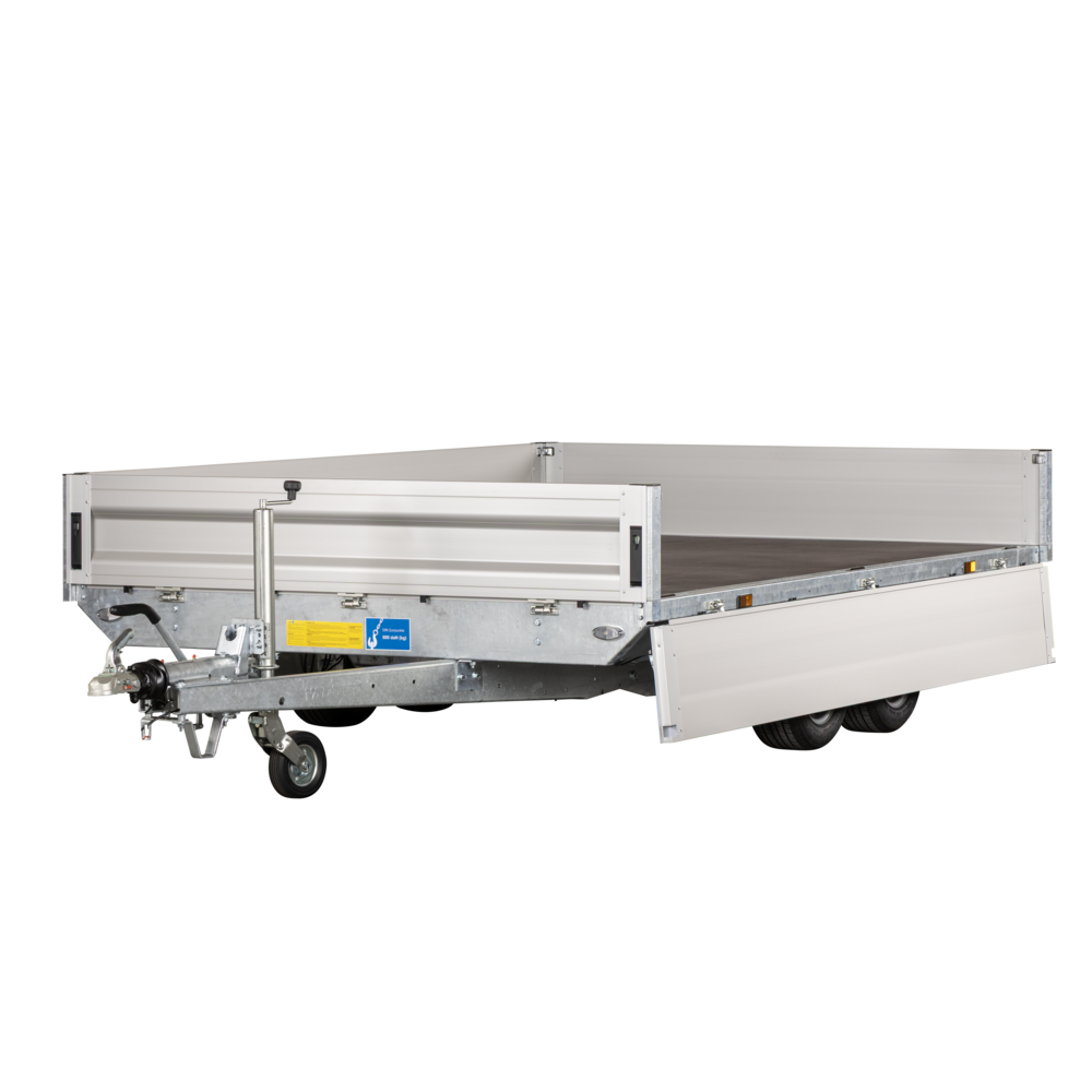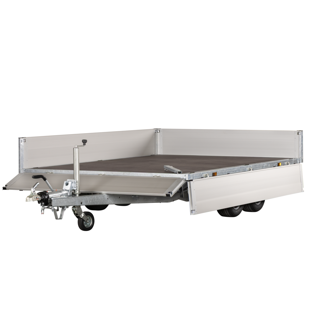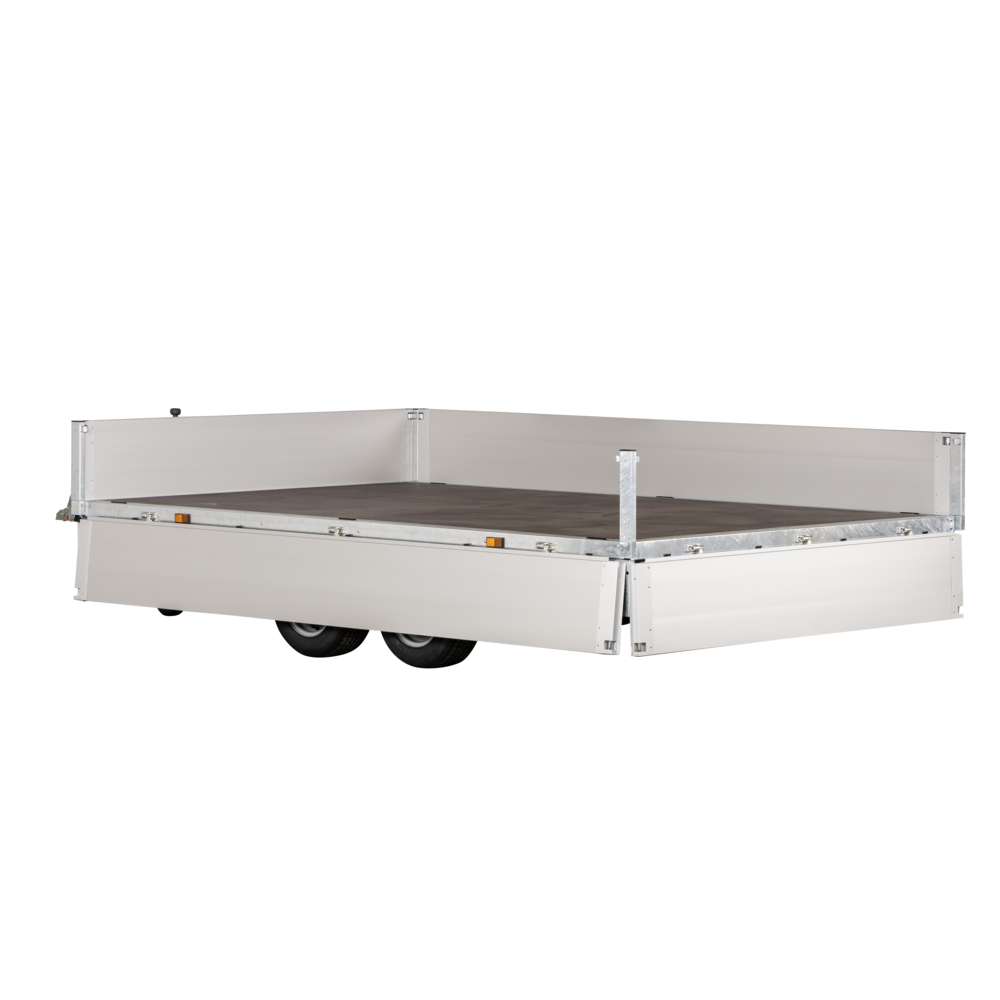 Traileren har to aksler og hjul placeret under chassiset, hvilket giver maksimal udnyttelse af ladets bredde. Bund i finer og aluminiumssider sikrer lang levetid og modstandsdygtighed mod vejr og slid. Alle fire sider kan åbnes, hvilket giver fleksibel og effektiv læsning og aflæsning.