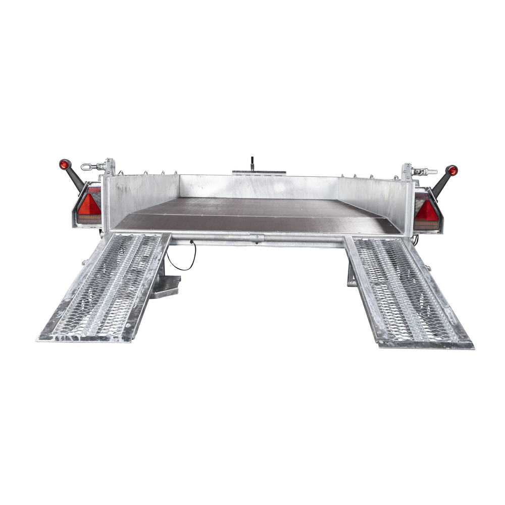 Traileren har to aksler og leveres med næsehjul for nem manøvrering. De 8 indvendige surringsøjer gør det enkelt at fastgøre lasten sikkert. Standard LED-lys giver forbedret synlighed og øget sikkerhed i alle arbejdsforhold.