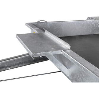 Denne beavertail-maskintrailer har en delt bagrampe, der gør på- og aflæsning af maskiner både nem og sikker. Den integrerede platform til skovl giver pladsbesparelse og sikrer optimal udnyttelse af ladet under transport.