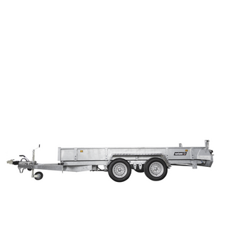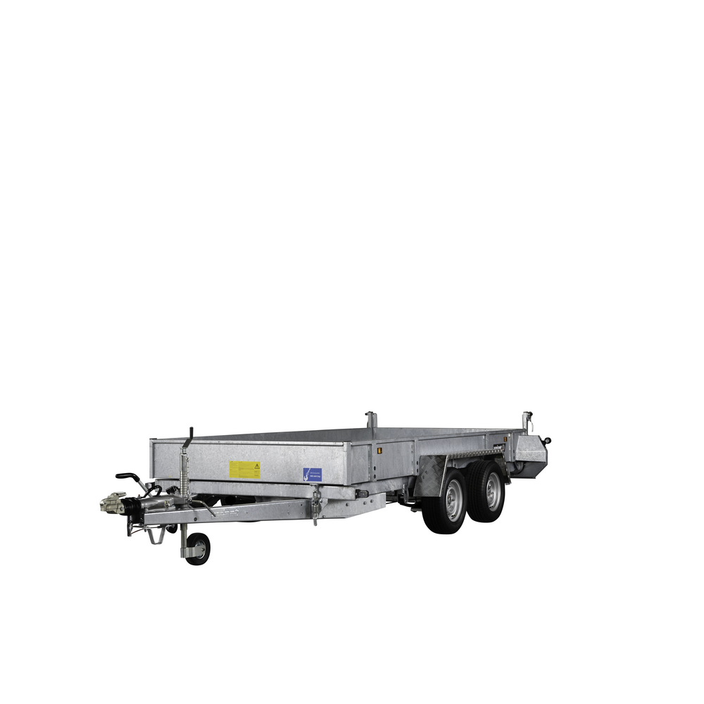 Traileren har to aksler med bremser, og hjulene er placeret på siden af chassiset for øget stabilitet, selv med tung last. Bund og sider i stål og finer sikrer lang levetid og modstandsdygtighed over for intensiv brug, hvilket gør den velegnet til dagligt arbejde under krævende forhold.