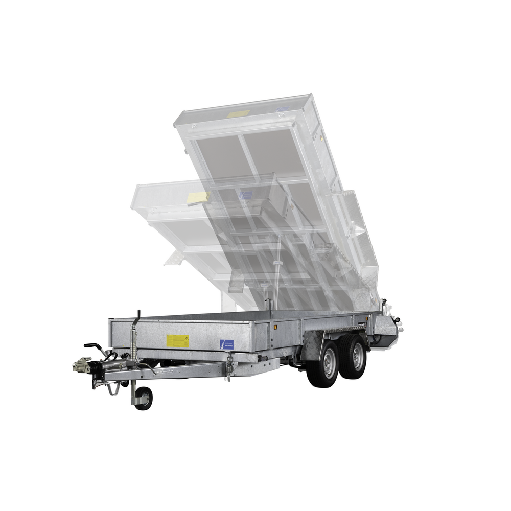 Den elektriske tipfunktion drives af medfølgende batteri og lader, så kraften altid er til rådighed. Traileren kan udstyres med platform til skovl, reservehjul og støtteben for ekstra stabilitet. En værktøjskasse giver plads til remme, kæder og andet udstyr. Yderligere konfigurationer inkluderer trådløs fjernbetjening, skovlholder, pladesider, netgitter, køreramper og støddæmpersæt.