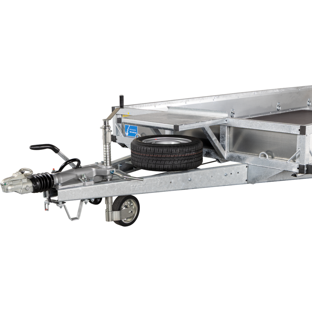 3518 B4 leveres med næsehjul, reservehjul og standard LED-lys, så traileren er klar til brug fra dag ét. Hjulplaceringen og robust konstruktion giver stabil kørsel, selv med tung last.