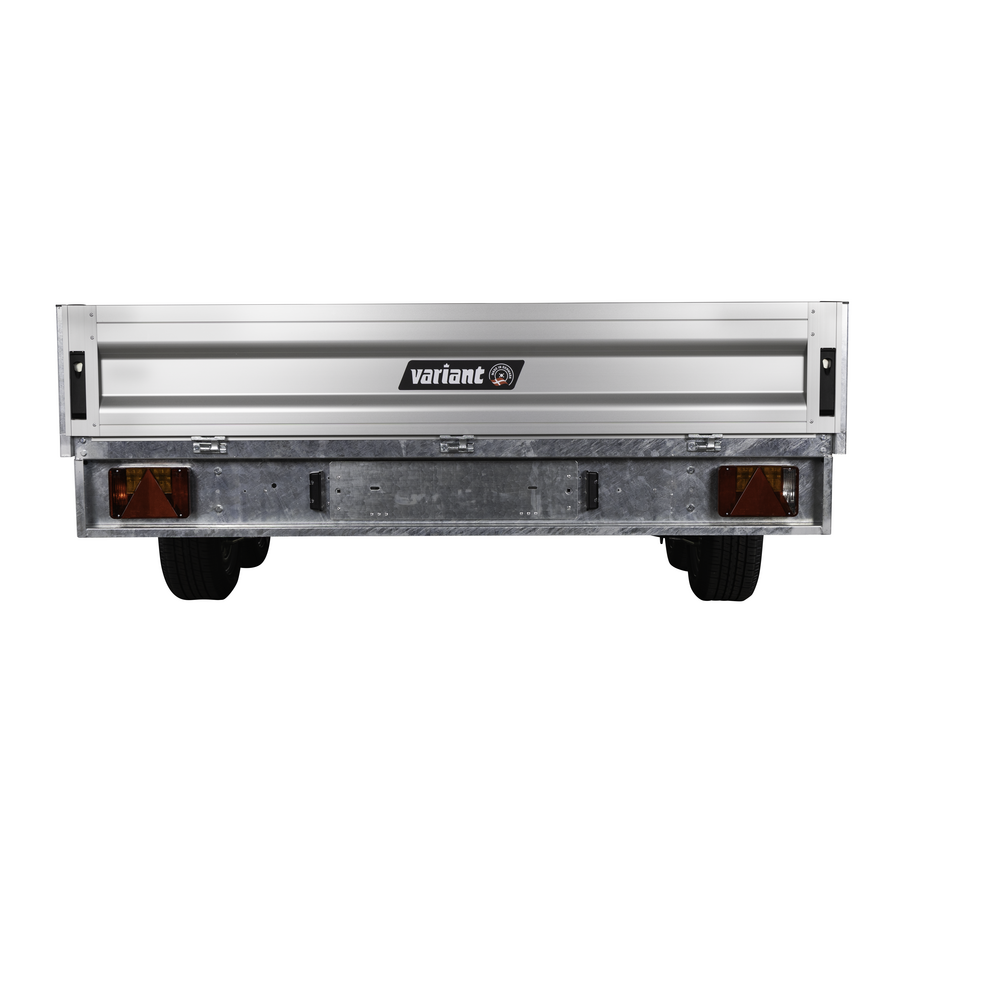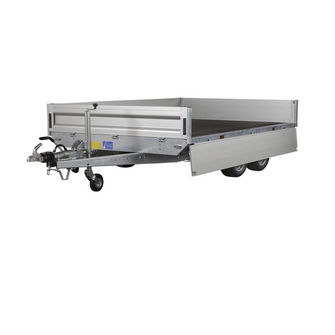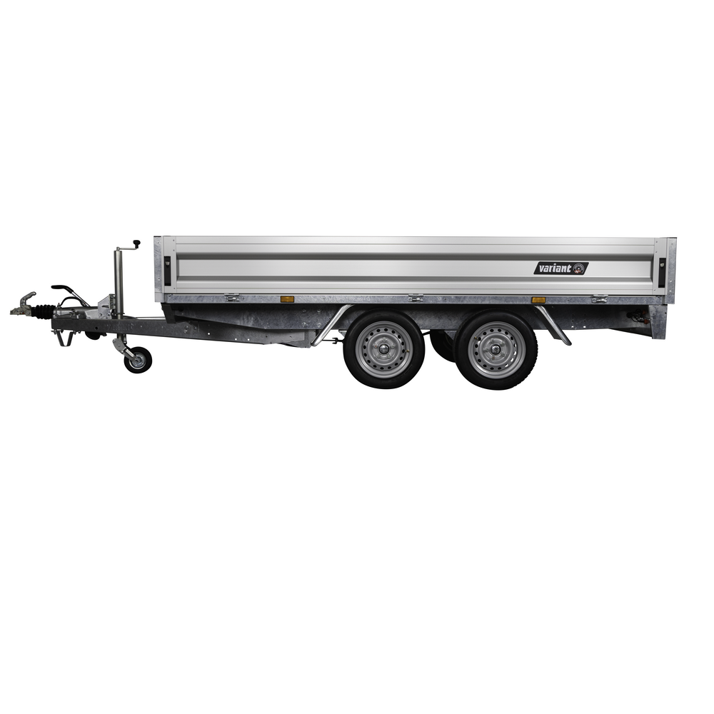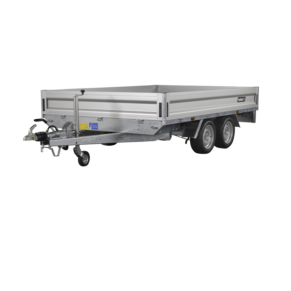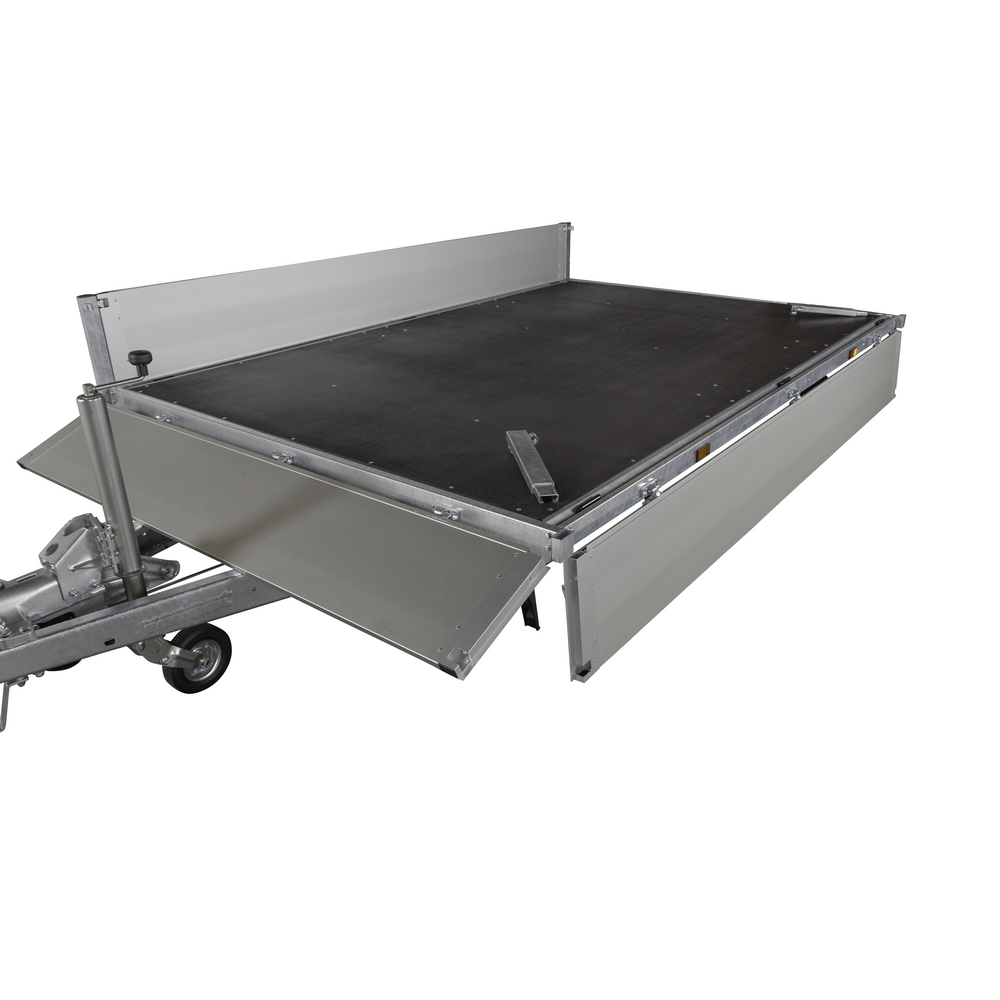 Traileren er udstyret med dobbeltaksler og hjul placeret under chassiset, hvilket giver optimal udnyttelse af ladets fulde bredde. Aluminiumsider og en bund i slidstærk finer sikrer holdbarhed og modstandskraft mod både vejr og hårdt arbejde. Alle fire sider kan åbnes, hvilket giver maksimal fleksibilitet ved transport af store eller uhåndterlige materialer.