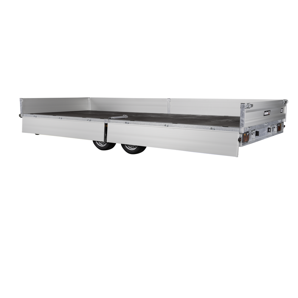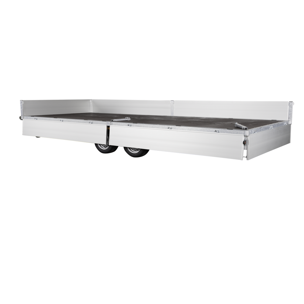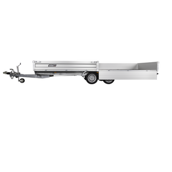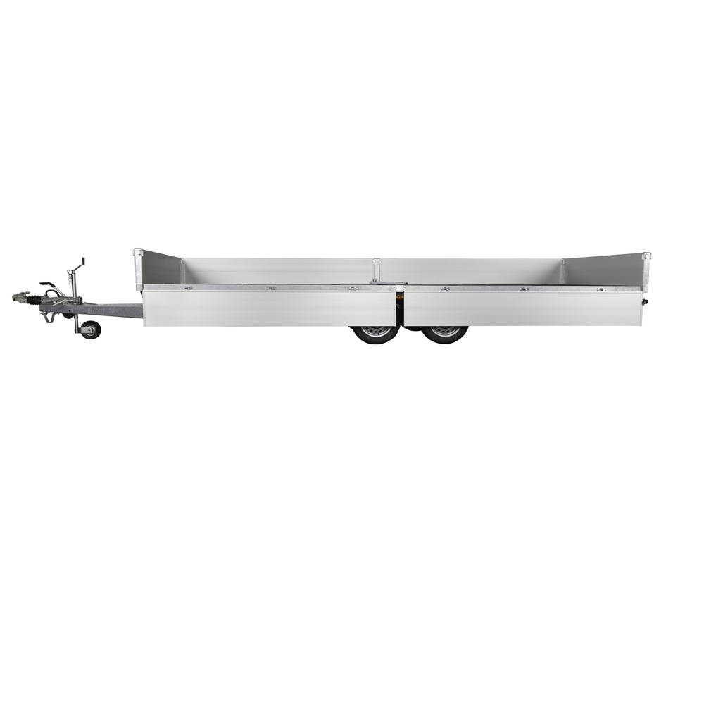 Traileren er udstyret med to aksler og har hjulene placeret under chassiset, hvilket giver fuld udnyttelse af hele ladets bredde. Den kraftige finerbund kombineret med lette og slidstærke aluminiumssider sikrer lang levetid og modstandsdygtighed over for hårdt arbejde og skiftende vejrforhold.