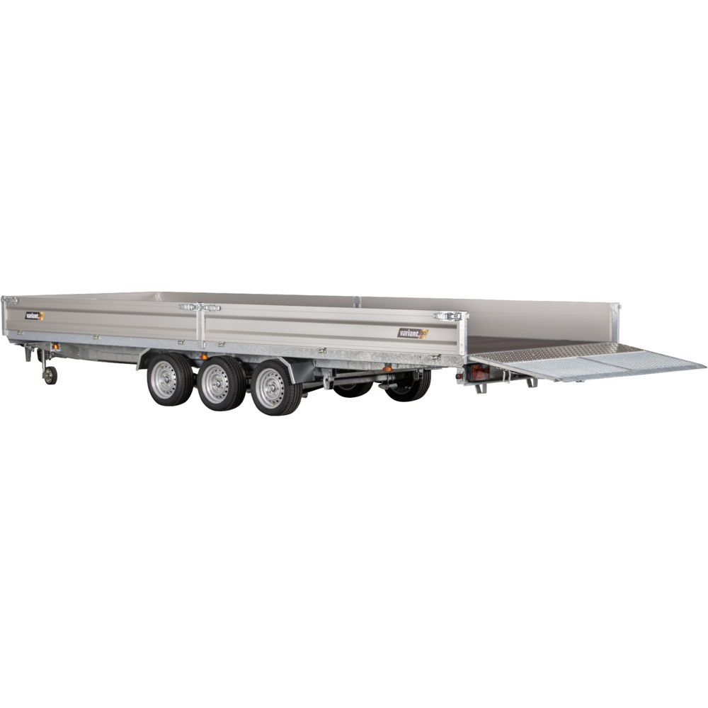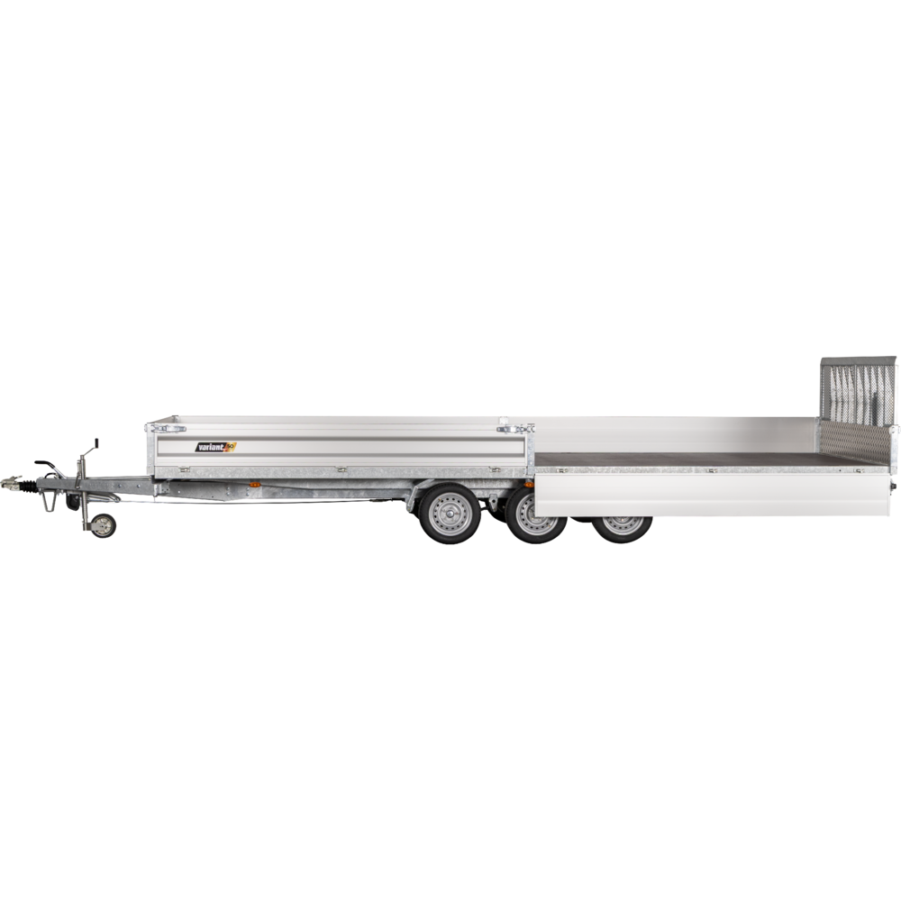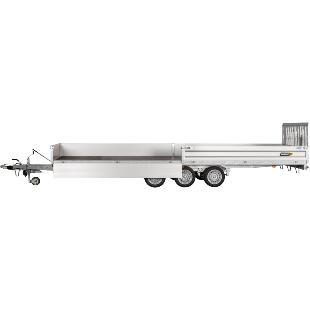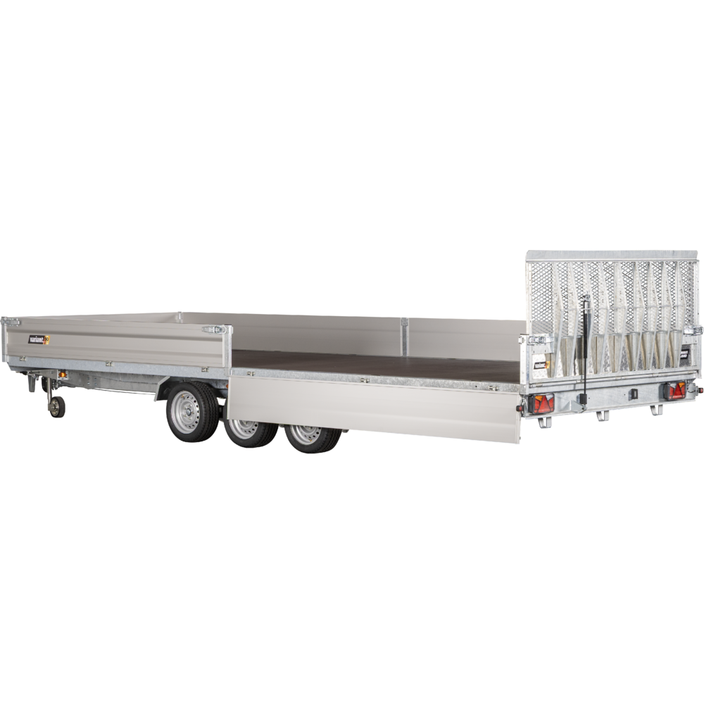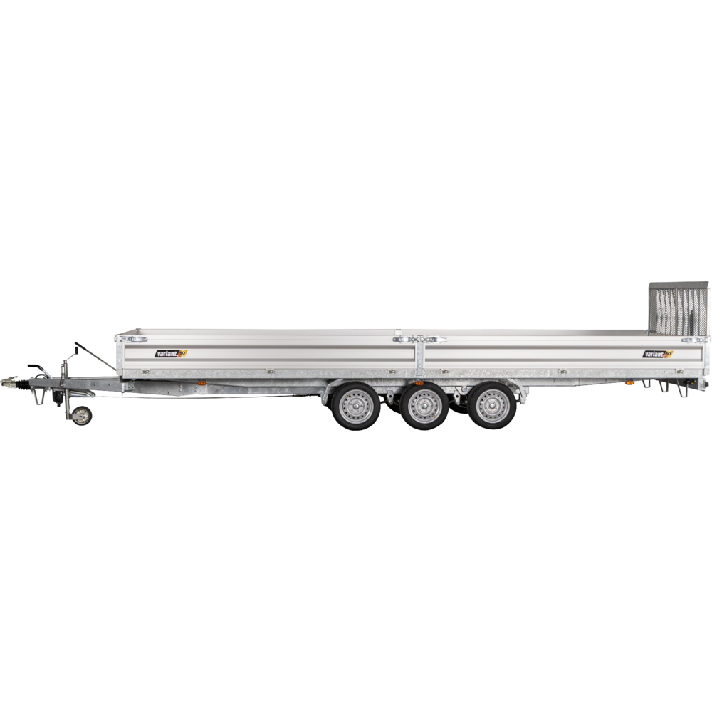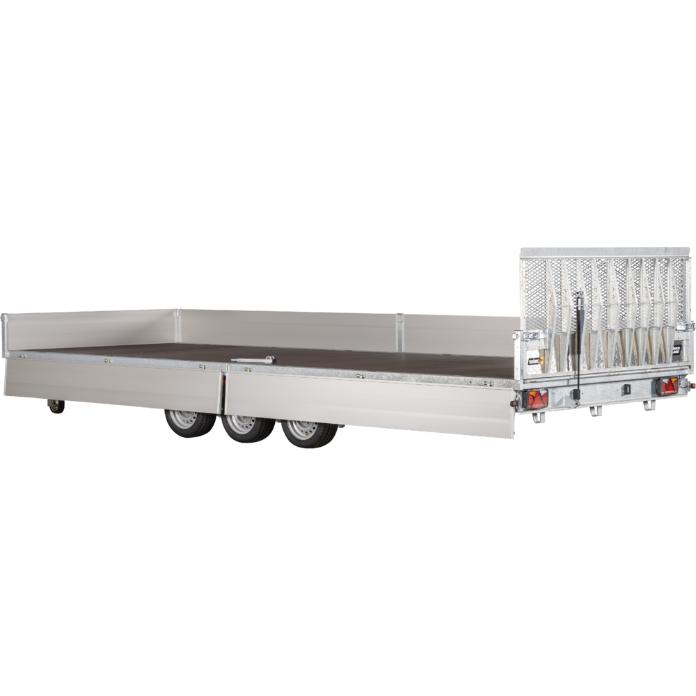 Hjulene er placeret under chassiset for at udnytte ladets fulde bredde, mens tre aksler giver stabilitet under tung last. Bunden er udført i slidstærk finer, og siderne er i let og stærkt aluminium, hvilket giver lang levetid og lav vægt. Standardmonteret LED-lys øger synlighed og sikkerhed under transport.
