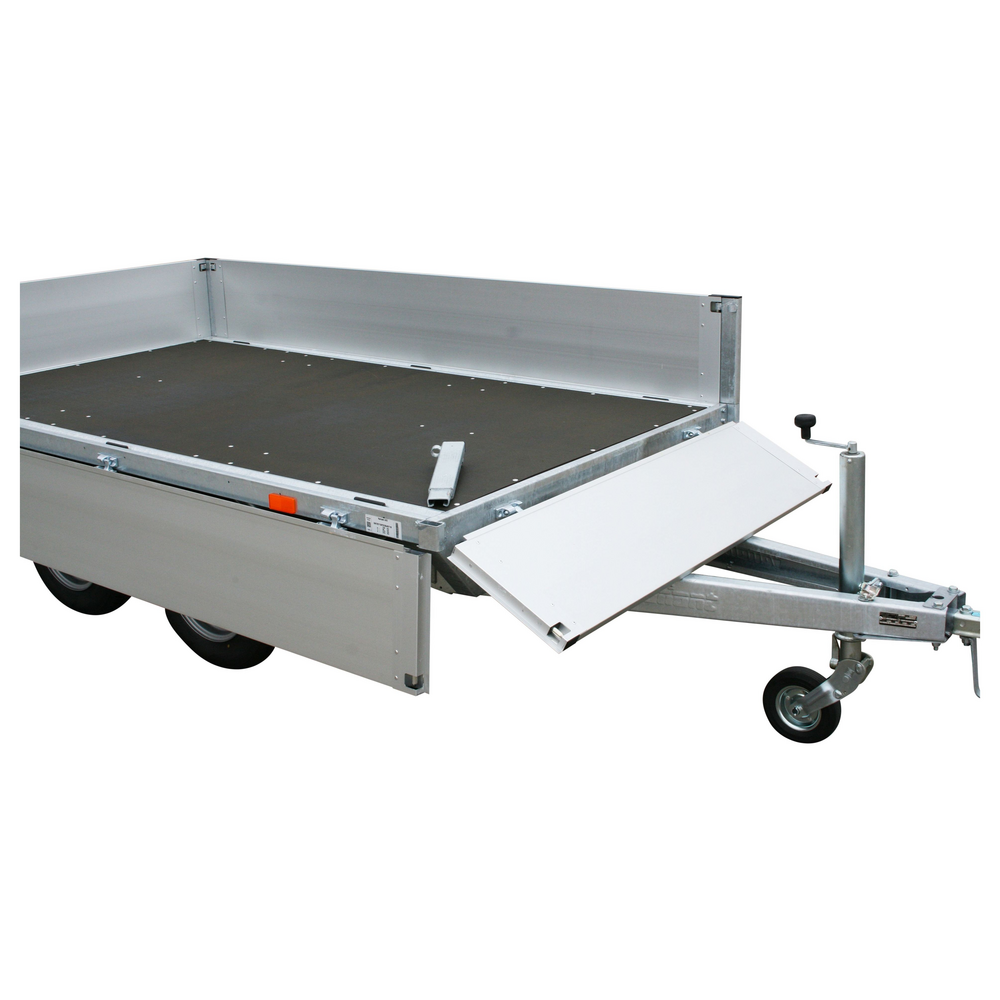 Traileren har en slidstærk finerbund og lette aluminiumssider, som sikrer lang holdbarhed og lav vægt. Alle fire sider kan åbnes, hvilket gør af- og pålæsning fleksibel og hurtig. De aftagelige hjørnestolper giver mulighed for tilpasning af ladet, så det kan udnyttes optimalt til forskellige typer gods.