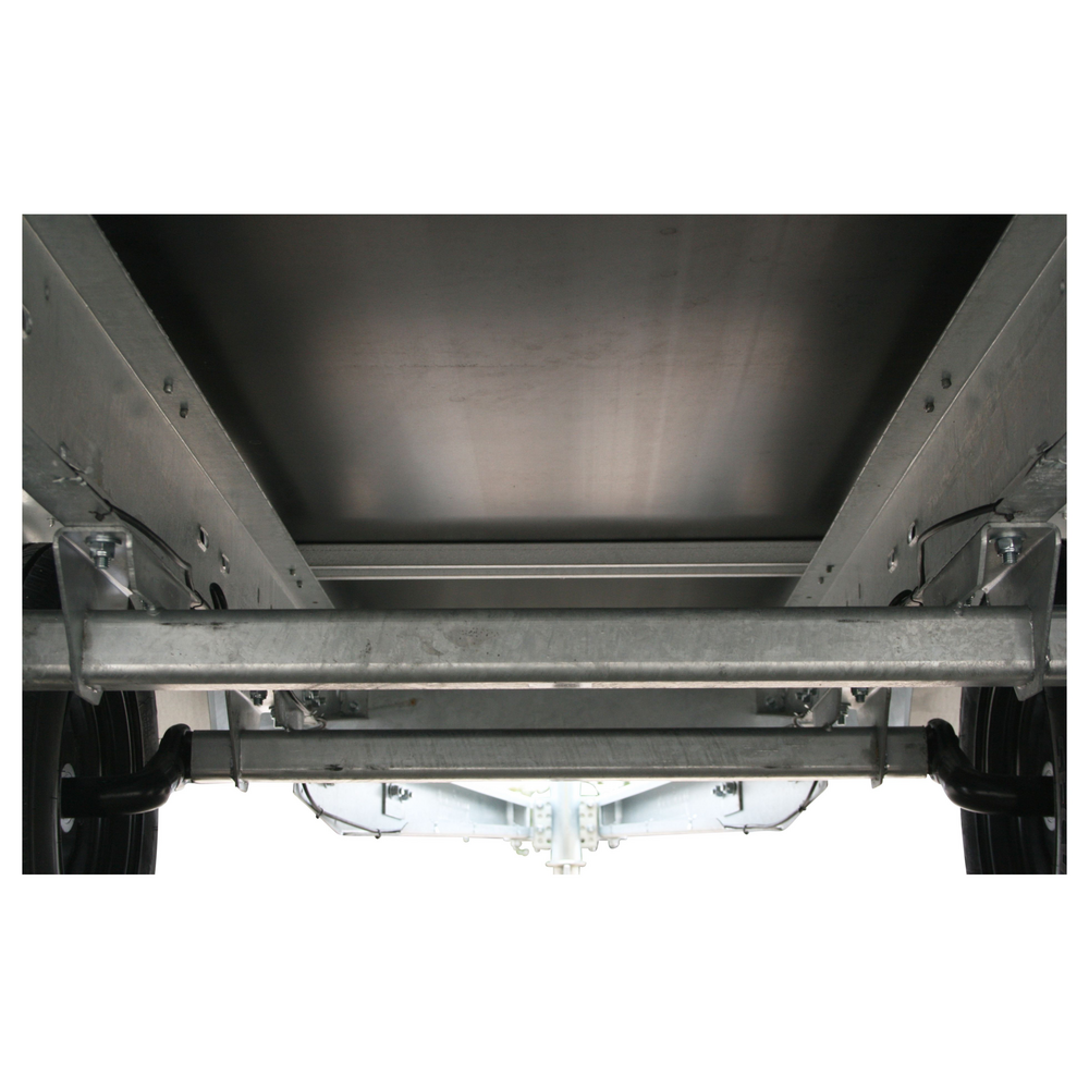 Med seks indvendige surringsøjer kan lasten fastgøres sikkert under transport. Det integrerede lukkesystem sikrer pålidelig lukning af siderne, og det medfølgende næsehjul gør traileren nem at håndtere, også uden køretøj tilkoblet.
