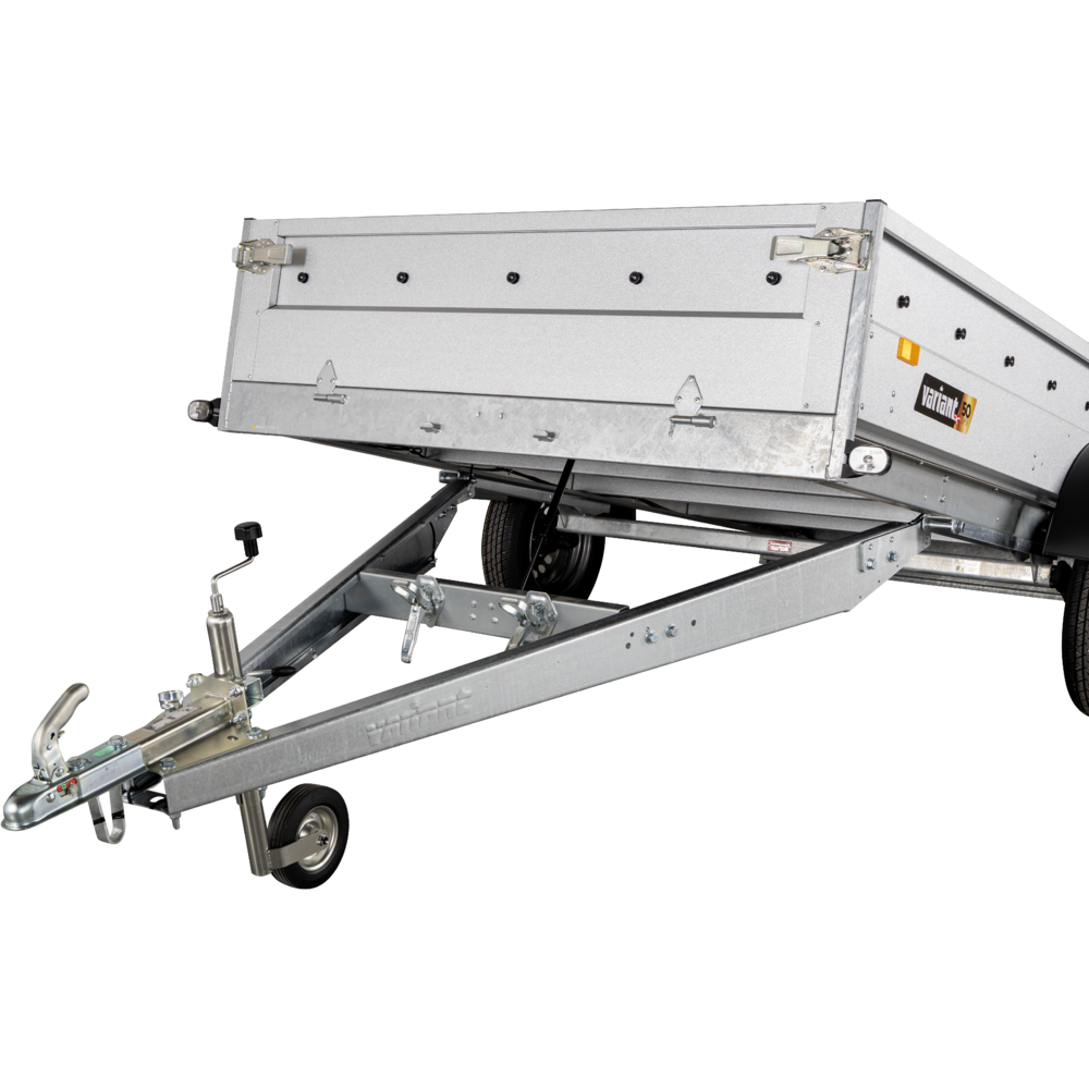 Variant 716 F3 Tip er en stærk erhvervstrailer designet til håndværkere, entreprenører og andre fagfolk, der kræver holdbarhed og funktionalitet. Den robuste stålkonstruktion kombineret med tipfunktionen gør traileren ideel til transport og nem aflæsning af tunge materialer på byggepladser, i gartnerier eller under daglig drift.