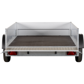 Traileren har en slidstærk finerbund, og hjulene er placeret på siden af chassiset for øget stabilitet under kørsel og læsning. Både forsmæk og bagsmæk kan åbnes, hvilket giver fleksible muligheder for af- og pålæsning af materialer.