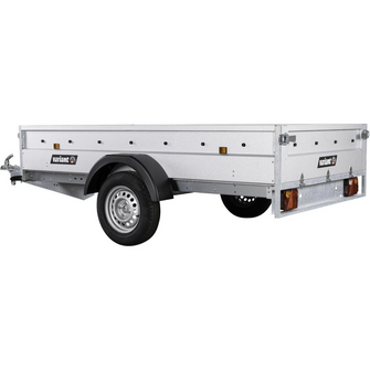 Traileren har bukket stålsider og en forstærket bagsmæk med alu-dørk og hængsler, der sikrer lang holdbarhed ved intensiv anvendelse. Både forsmæk og bagsmæk kan åbnes, hvilket giver fleksibel adgang fra begge ender og gør på- og aflæsning effektiv.