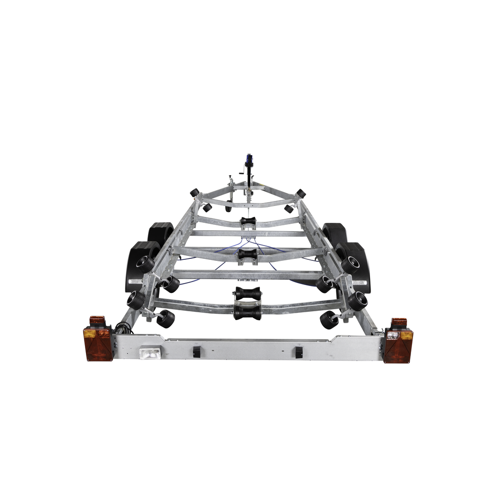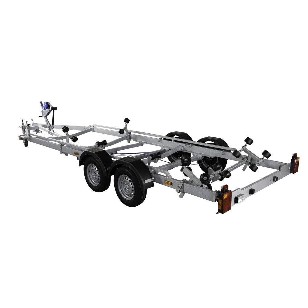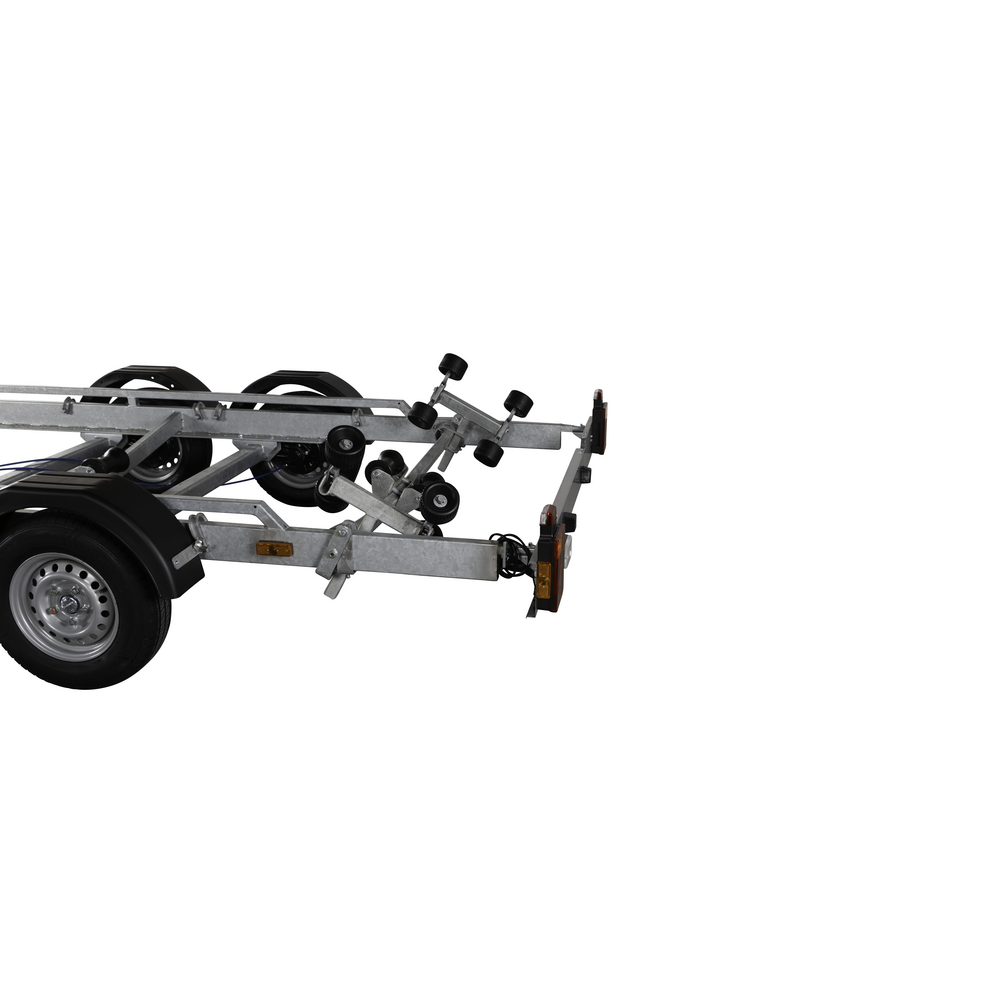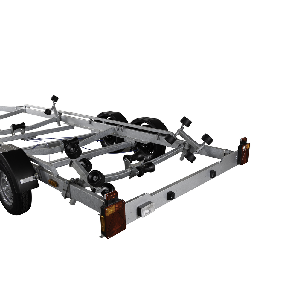 Traileren har to aksler og bremser, hvilket sikrer stabil og sikker kørsel, uanset om det er korte eller lange transportstrækninger. Med 4 kølruller og 12 sideruller får båden optimal støtte og skånsom håndtering under transport.