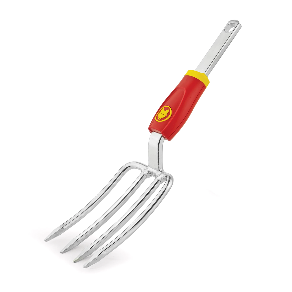 Den lille plantegaffel med de store mellemrum mellem tænderne gør det muligt for dig at grave planter op af jorden med mindre beskadigelse af rodnettet og på steder, hvor en almindelig havegreb ville være for voldsom i størrelsen.