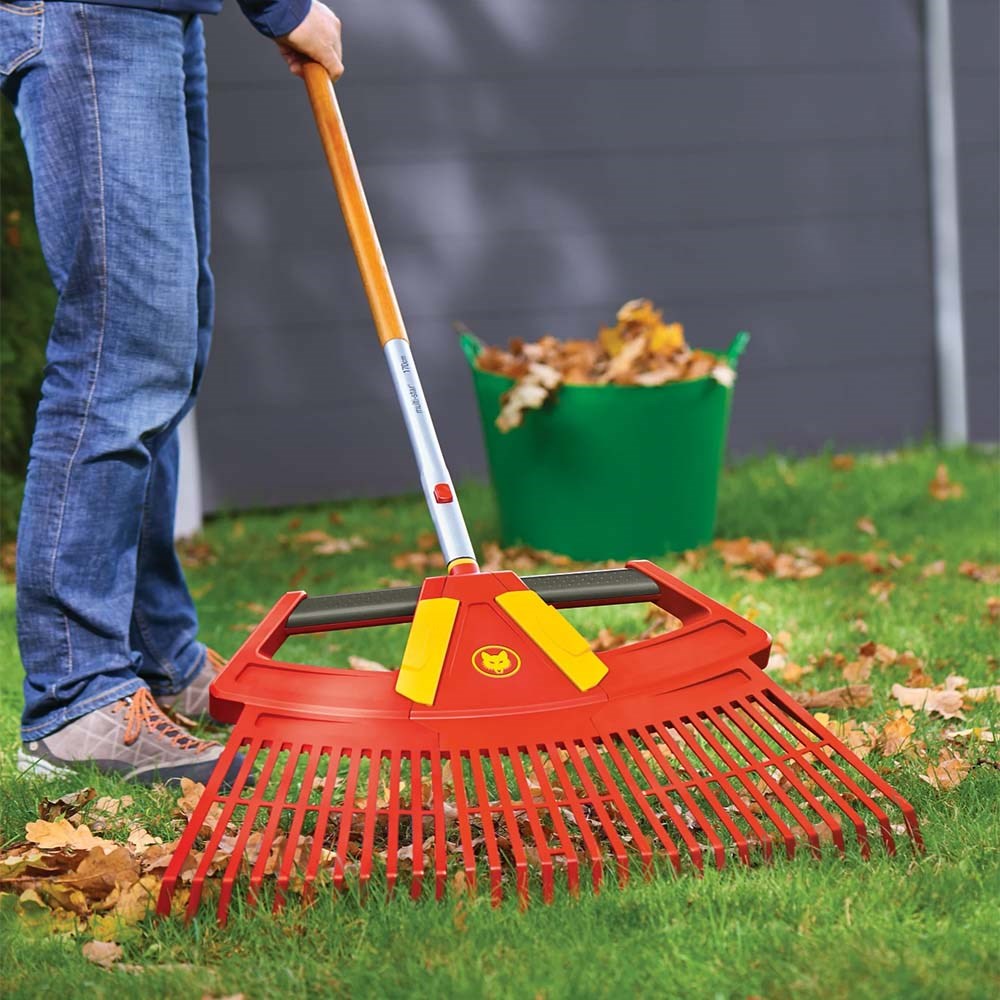 Med denne fleksible løvrive, som kan skilles i 3 dele, og som du kan justere bredden på til 20, 48 eller 76 cm, kan du komme ind i alle hjørner og kroge og hurtigt få revet græs og blade m.m. sammen, så udendørsarealerne ser pæne ud igen.