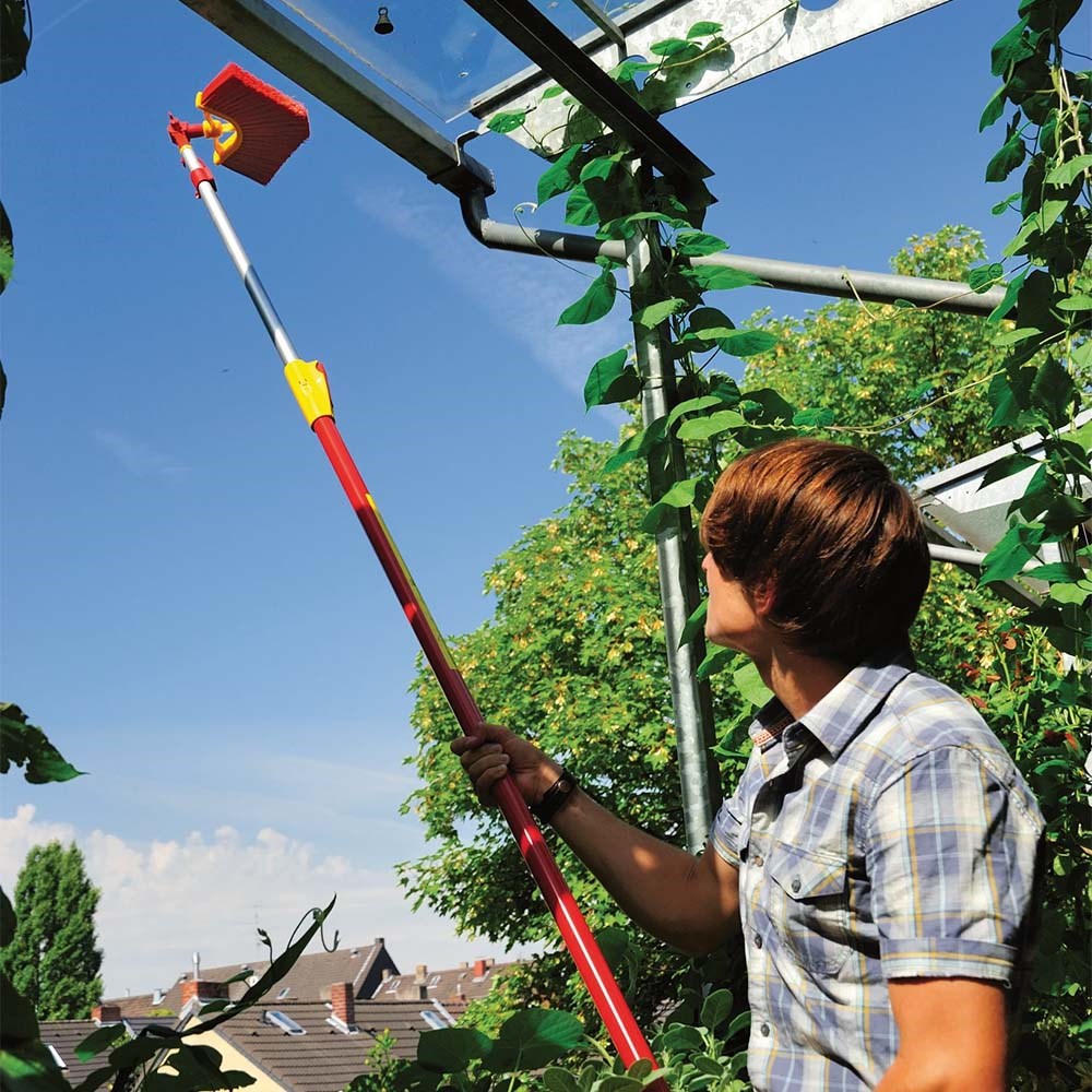 Med denne specialformede børste, som har en arbejdsbredde på 25 cm, kan du nemmere gøre tagrender og andre ufremkommelige steder rene fra jorden, så du slipper for at skulle balancere på en klapstige el. lign.