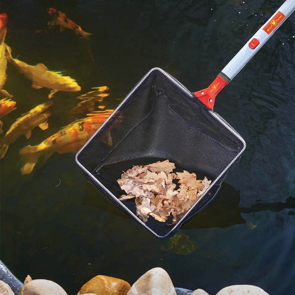 Det store, solide store fiskenet til skafterne i WOLF-Gartens Multi-Star-system er eminent til at fjerne blade, alger og andemad fra havebassiner og pools samt til at håndtere fisk i forbindelse med havebassinet.