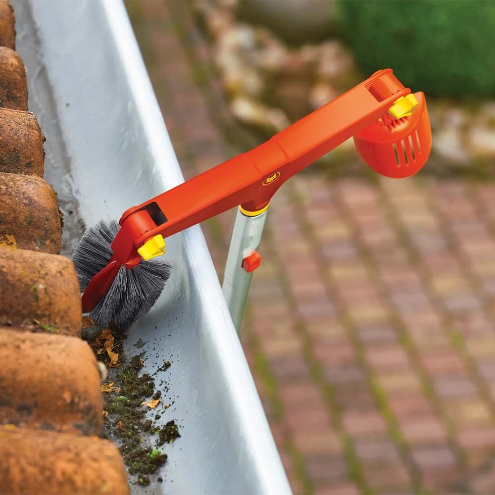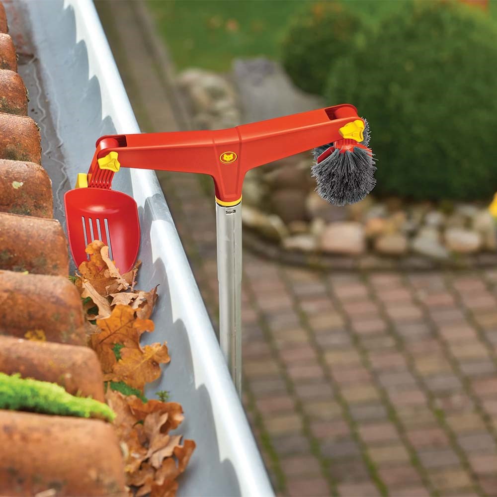 Med dette 2-i-1-redskab kan du nemmere gøre tagrender og andre ufremkommelige steder rene stående på jorden, så du ikke skal ud i risikable balanceakter på klapstiger o. lign.