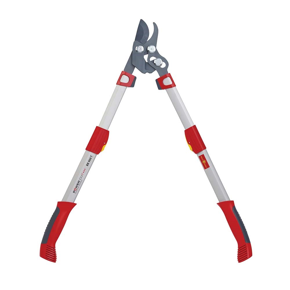 Grensaksen Power Cut RR 900 T er en af WOLF-Gartens helt store grensakse, der klipper grene på op til 50 mm i diameteren takket være sin 4-dobbelte kraftoverførsel, og desuden har teleskopiske håndtag, så saksen kan blive mellem 65 og 90 cm lang, alt efter behov.