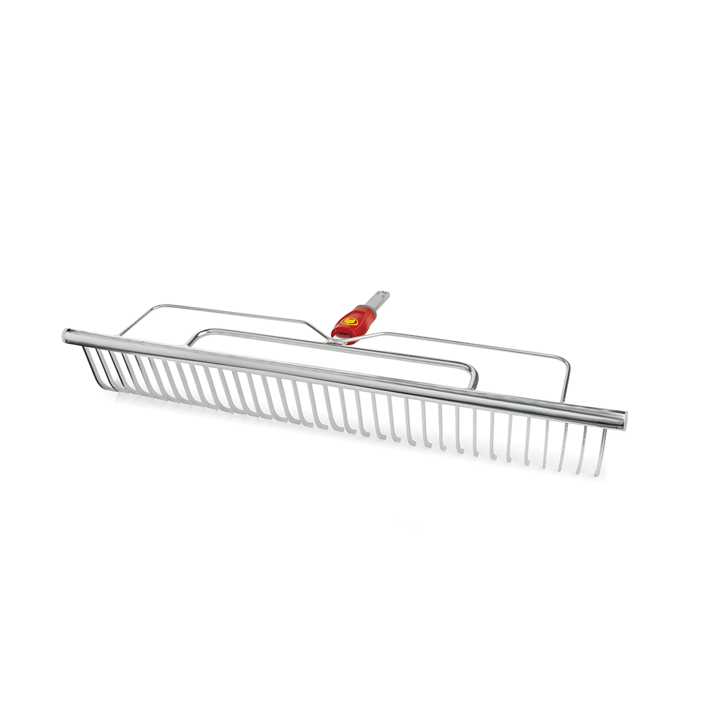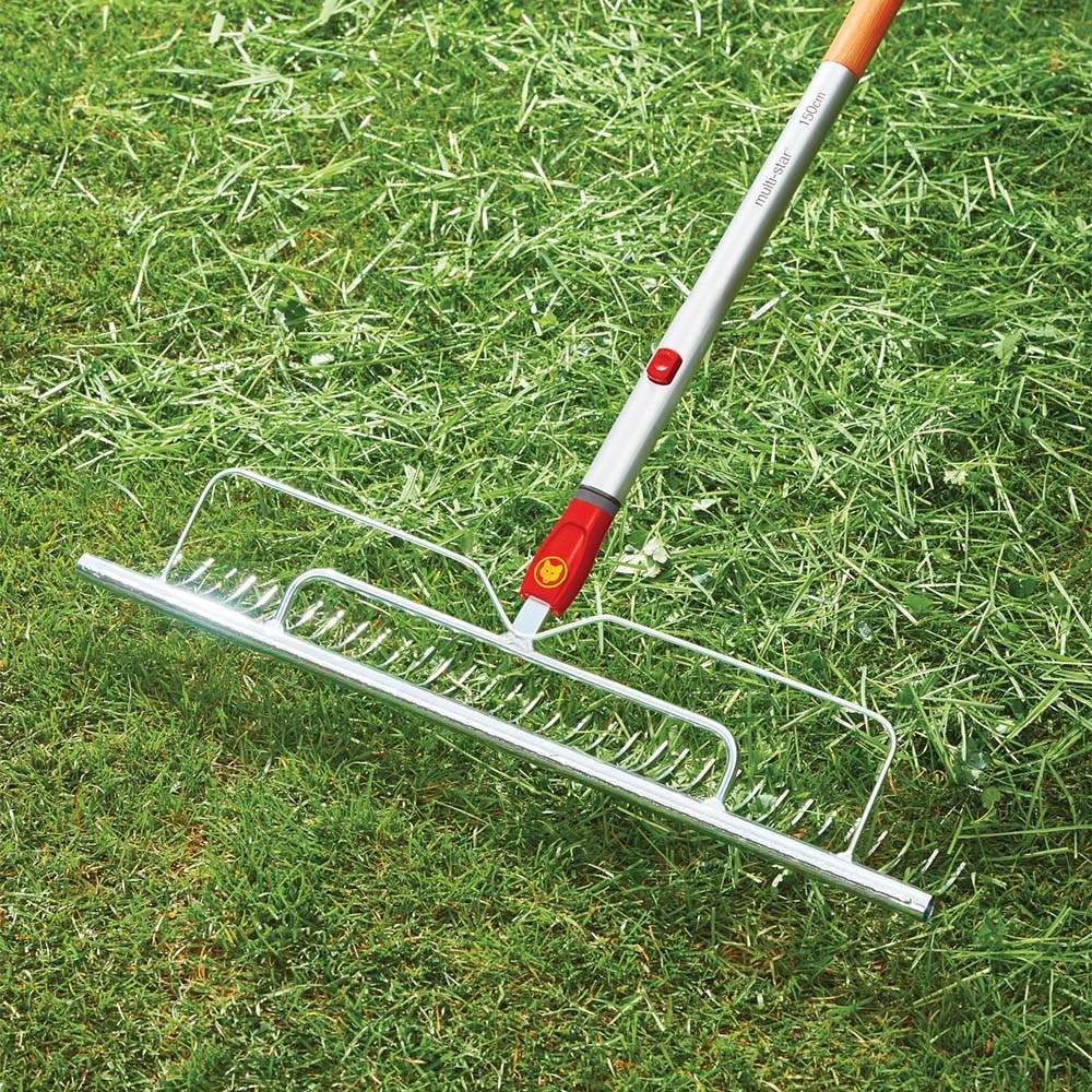 Skal græsplænen holdes fri for blandt andet afklippet græs og blade, er dette plænerivehoved fra tyske WOLF-Garten det perfekte redskab. Med en arbejdsbredde på 42 cm kan store arealer hurtigt blive bearbejdet af denne brede rive. De brede bøjler på redskabshovedet hjælper med at holde det sammenrevet materiale fast, så det efterfølgende er let at bortskaffe. Rivens tænder er ekstra hærdede, hvilket øger levetiden og forhindrer at tænderne bøjer let.