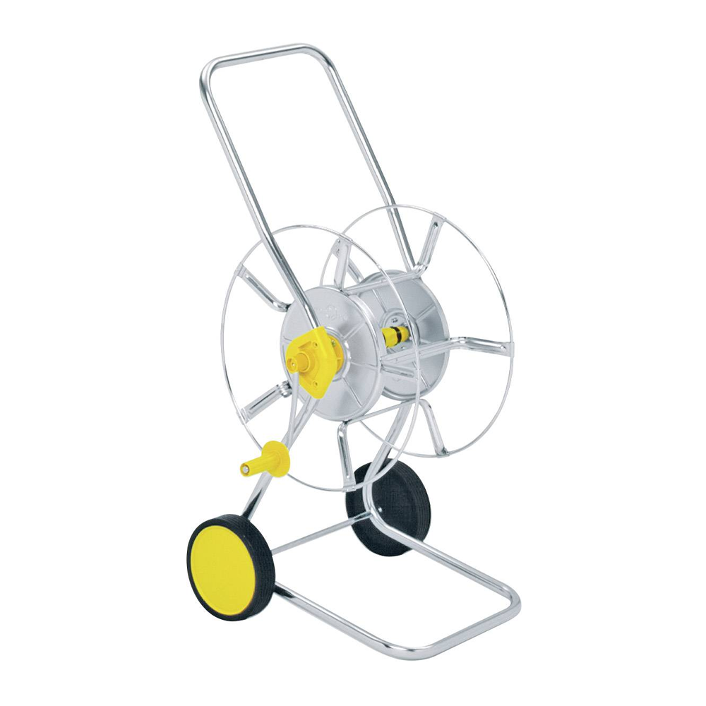 Slangevognen kan holde en 1/2" slange på op til 80 meter eller en 3/4" slange på op til 50 meter.