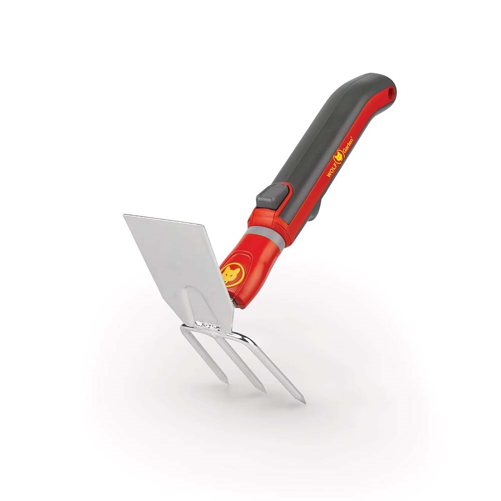 Denne hakke fra WOLF-Garten er dobbeltrettet, hvilket gør den til et godt valg til at løsne kompakt jord. Den flade hakke er bedst til at slå hul på jorden og til at luge ukrudt, mens den gaffelformede side dobler op som en rive.
